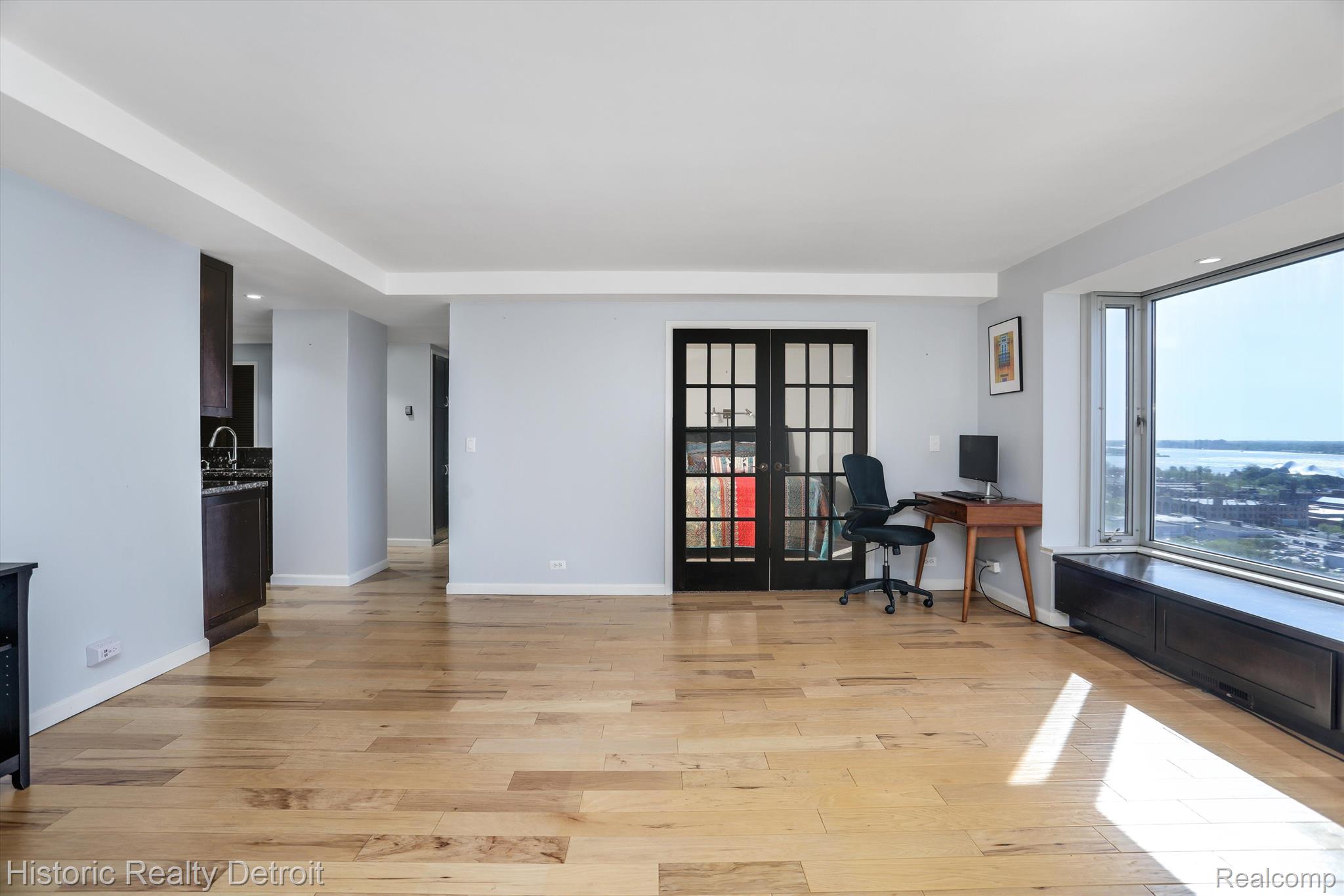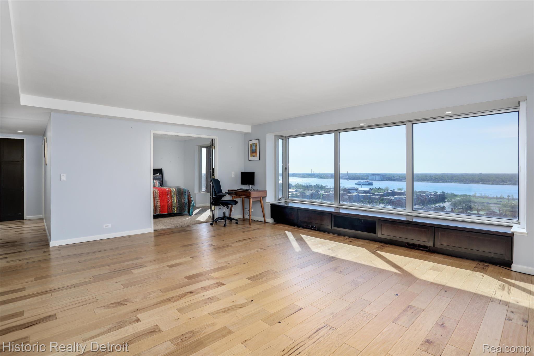 Elevated Riverfront Living in a Mid-Century Modern Detroit Icon! Bright, open, and thoughtfully designed, Unit 1604 at 1300 E. Lafayette offers a unique blend of modern updates and classic mid-century appeal. This one-bedroom, one-bath south-facing condo sits high on the 16th floor, offering panoramic views of the Detroit River and the vibrant international waterway below. Inside, a custom floor plan opens the bedroom to the living area, creating an airy, loft-like flow that’s ideal for modern living. Expansive windows bathe the space in natural light and frame sweeping views that stretch from Belle Isle to the Ambassador Bridge. The updated kitchen features granite countertops, stainless steel appliances, and dark wood cabinetry, while the renovated bath is finished with timeless tile and polished fixtures. Life at 1300 E. Lafayette offers more than just a beautiful home — it’s a gateway to a luxury lifestyle. Residents enjoy two heated outdoor pools, tennis courts nestled among green space, a well-appointed fitness center, 24-hour concierge service, and secure entry. The building’s on-site laundry, optional parking, and classic mid-century modern architecture make daily living both stylish and seamless.