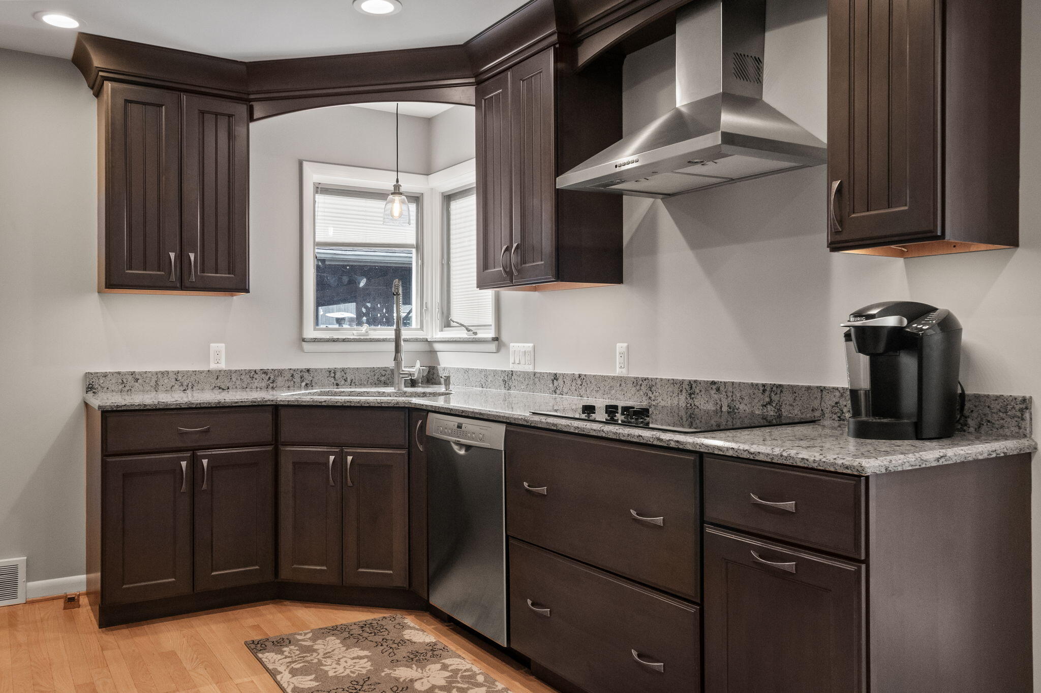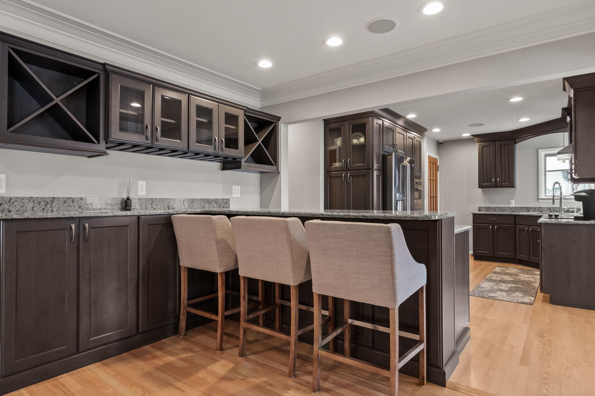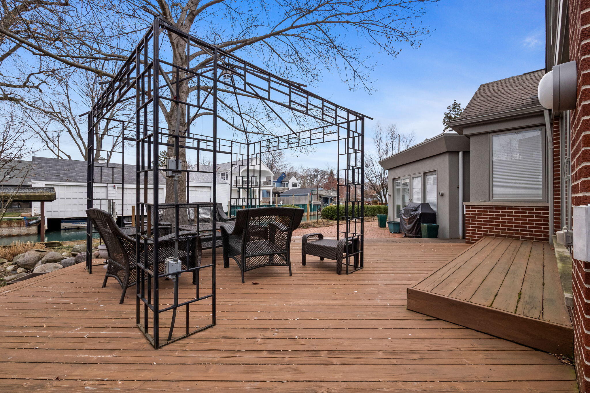 This stunning, well-maintained ranch offers an unparalleled living experience with 120 feet of prime canal frontage in one of Detroit's most sought-after waterfront neighborhoods. A newly renovated kitchen features sleek quartz countertops and top-of-the-line appliances, seamlessly blending modern functionality with elegant design. The home has been meticulously updated with new electrical and plumbing systems. Key features include a spacious family room and open floor plan, heated floors in the dining room and custom glass atrium. Additional highlights include a two-car attached garage, sprinkler system, finished basement, new AC and furnace and Pella windows throughout. A 35' x 15' covered boat well offers direct access to the water with large patio to enjoy the views.