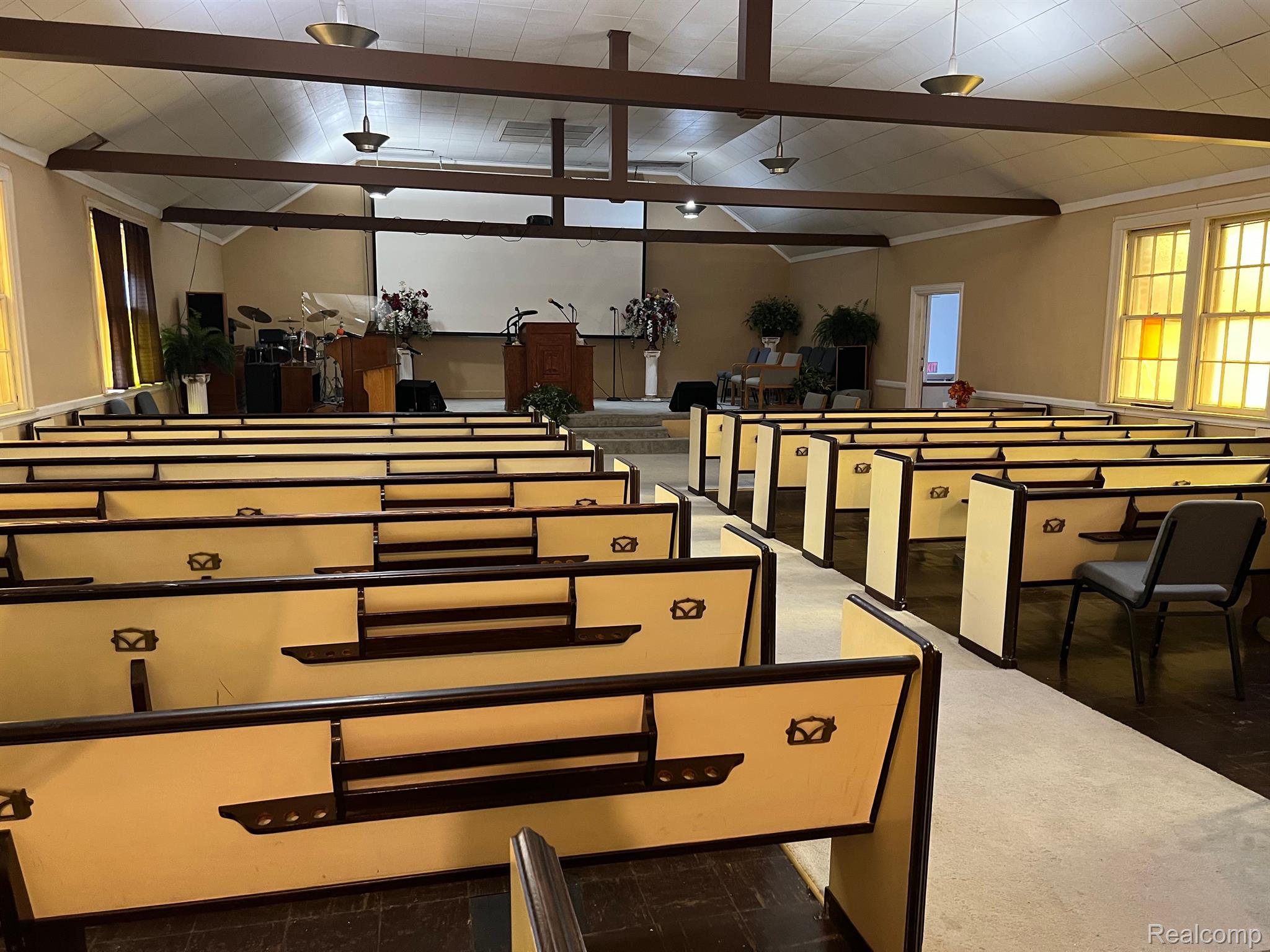 Seats 500/550, has balcony, choir, central air- sanctuary, 14 classrooms/offices, 7 restrooms, 2 kitchens, 2 dining areas, 125 seat chapel, Gymnasium, 2 parking lots. includes 15728 Plymouth Rd- vacant lot.