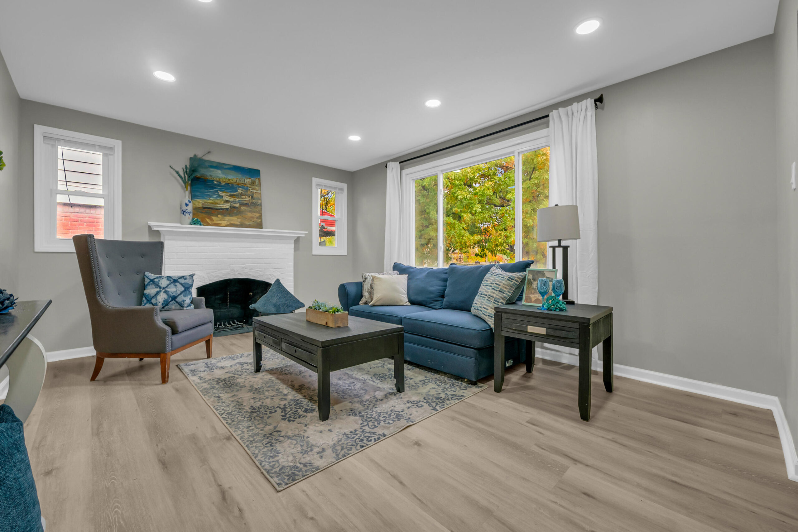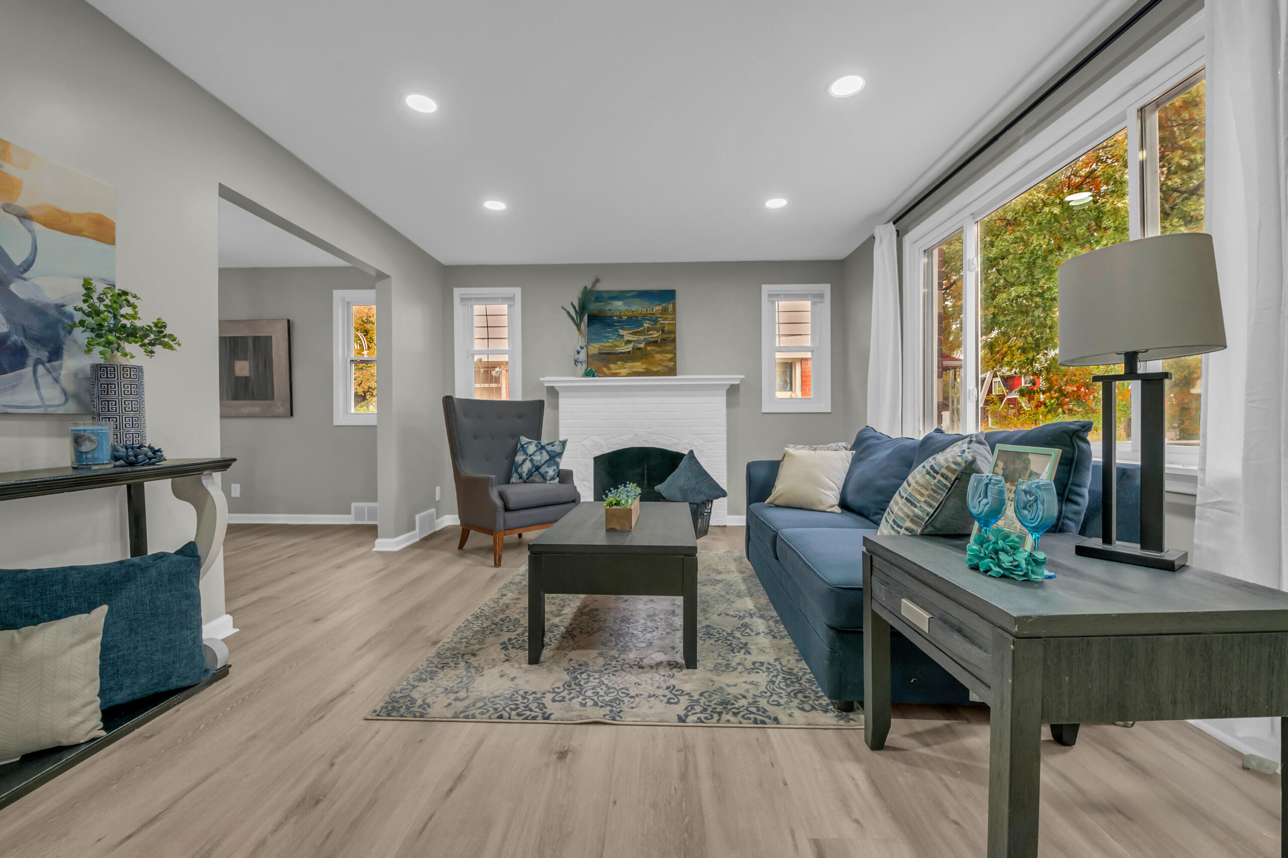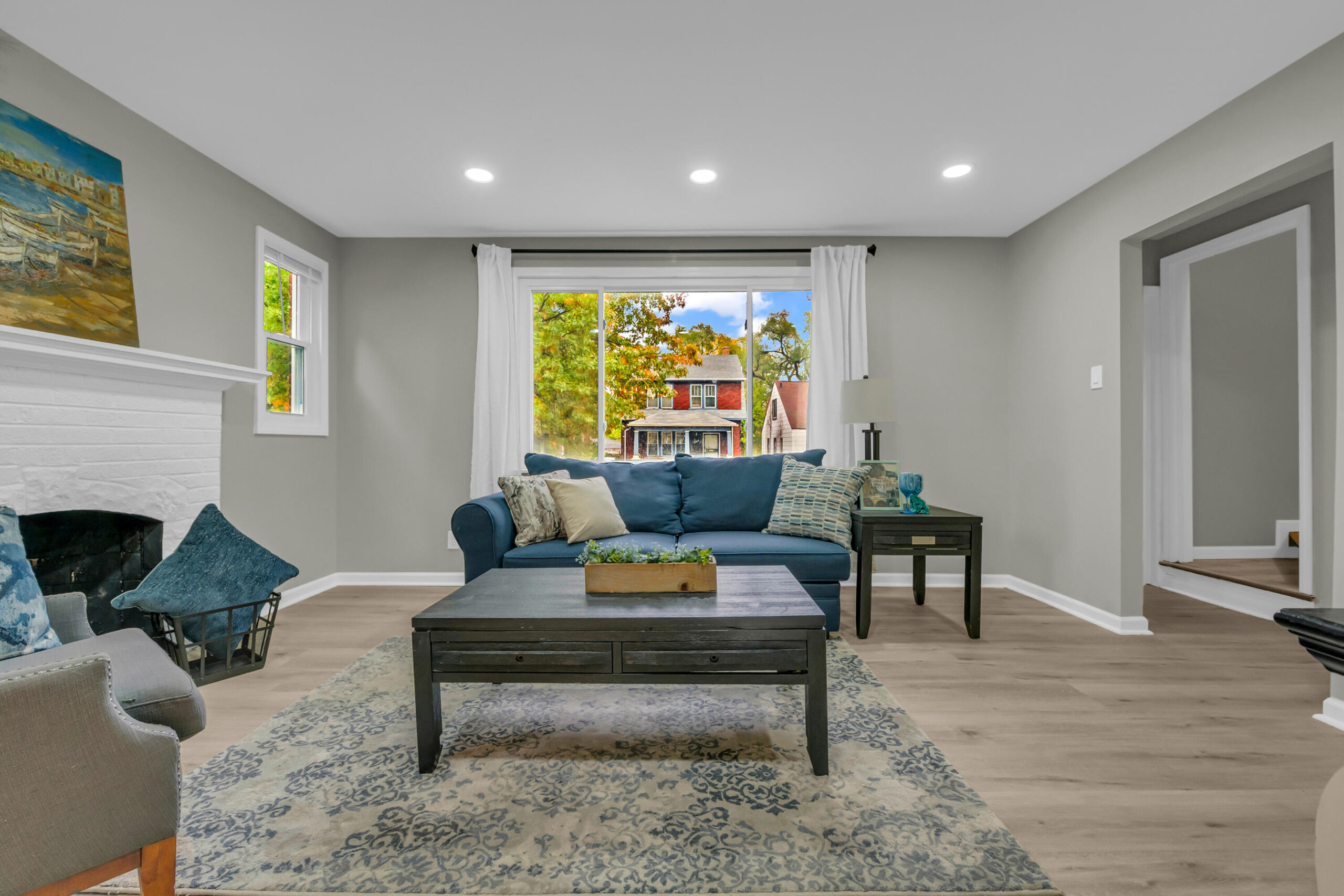 Welcome to 16143 Monica -- a beautifully reimagined brick Tudor nestled in Detroit's thriving Live6 Corridor, where community growth and revitalization meet timeless character. This fully renovated home blends original charm with modern elegance, featuring an open, light-filled living area anchored by a statement fireplace and recessed lighting. The bold blue kitchen exudes personality, showcasing marble-look counters, and chic subway tile. With four spacious bedrooms and two designer bathrooms, every detail reflects thoughtful craftsmanship -- from the LED-lit vanity and glass-door shower to new flooring and fixtures throughout. Enjoy morning coffee on the large front deck or unwind in your private backyard retreat. Positioned near Livernois and 6 Mile's expanding business district, this home offers both comfort and opportunity