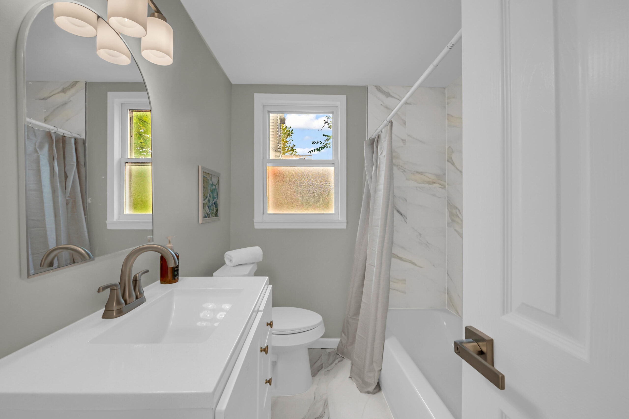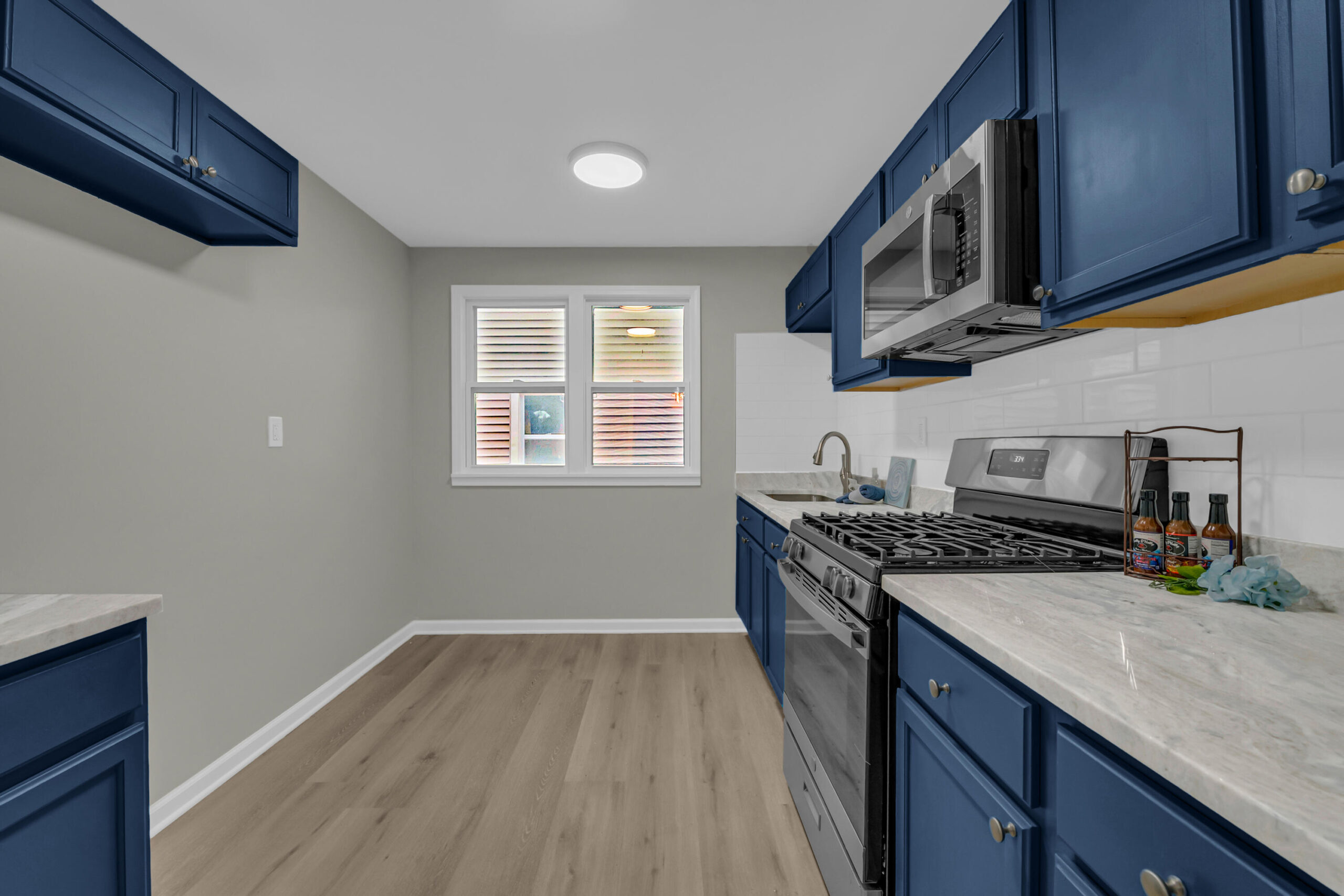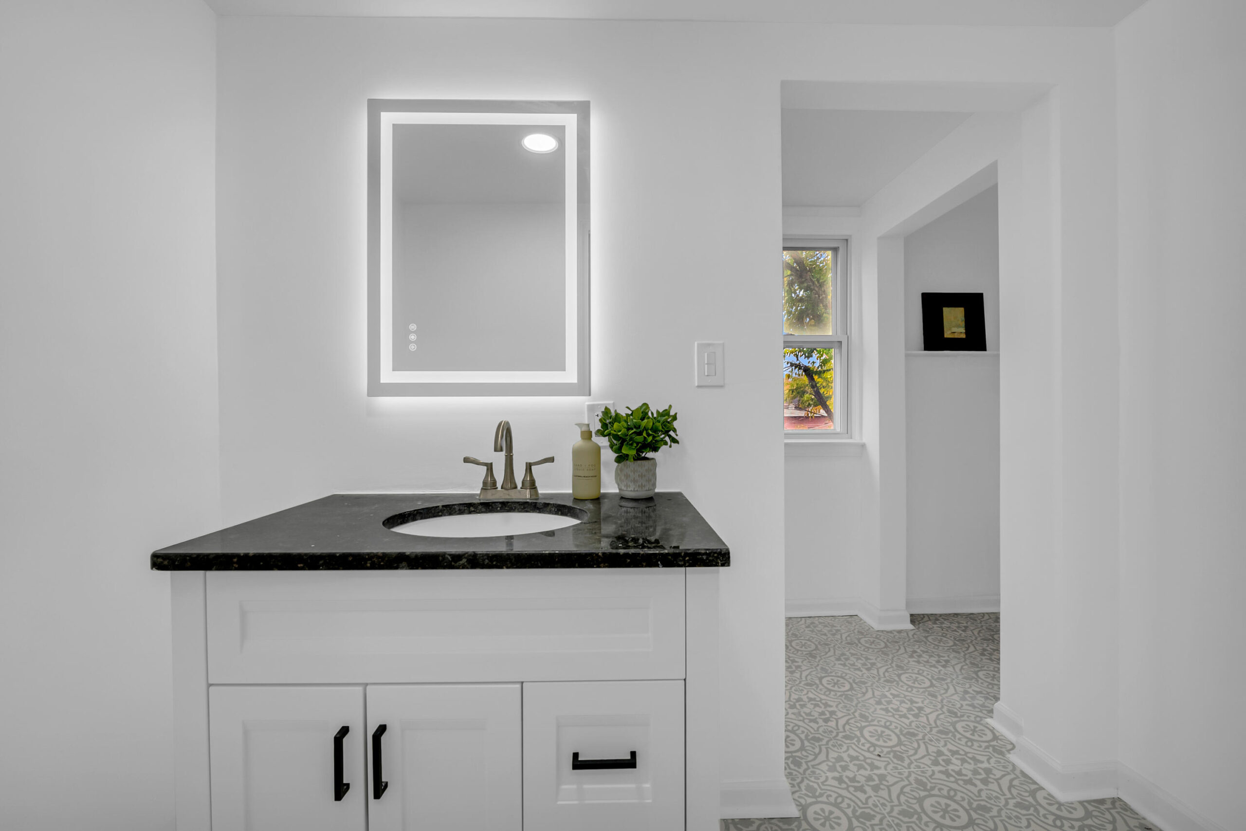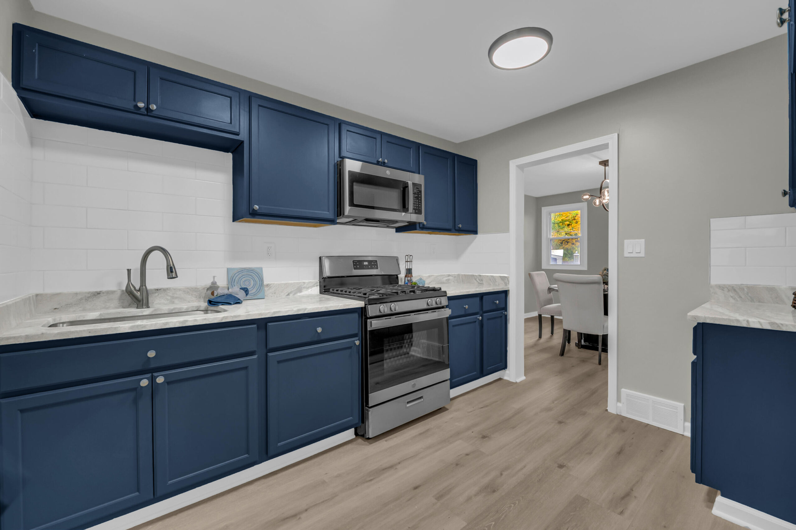 Welcome to 16143 Monica -- a beautifully reimagined brick Tudor nestled in Detroit's thriving Live6 Corridor, where community growth and revitalization meet timeless character. This fully renovated home blends original charm with modern elegance, featuring an open, light-filled living area anchored by a statement fireplace and recessed lighting. The bold blue kitchen exudes personality, showcasing marble-look counters, and chic subway tile. With four spacious bedrooms and two designer bathrooms, every detail reflects thoughtful craftsmanship -- from the LED-lit vanity and glass-door shower to new flooring and fixtures throughout. Enjoy morning coffee on the large front deck or unwind in your private backyard retreat. Positioned near Livernois and 6 Mile's expanding business district, this home offers both comfort and opportunity