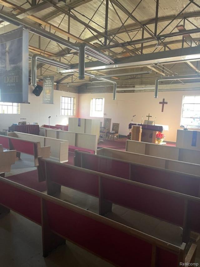 Large commercial building with large detached garage. Fenced in parking lot. Building has rolling commercial door for equipment and material access into the building. All square footage is on one level. Three heating furnaces, two bathrooms, and a lot of open space. Office space is at front of building. A great busness opportunity property.