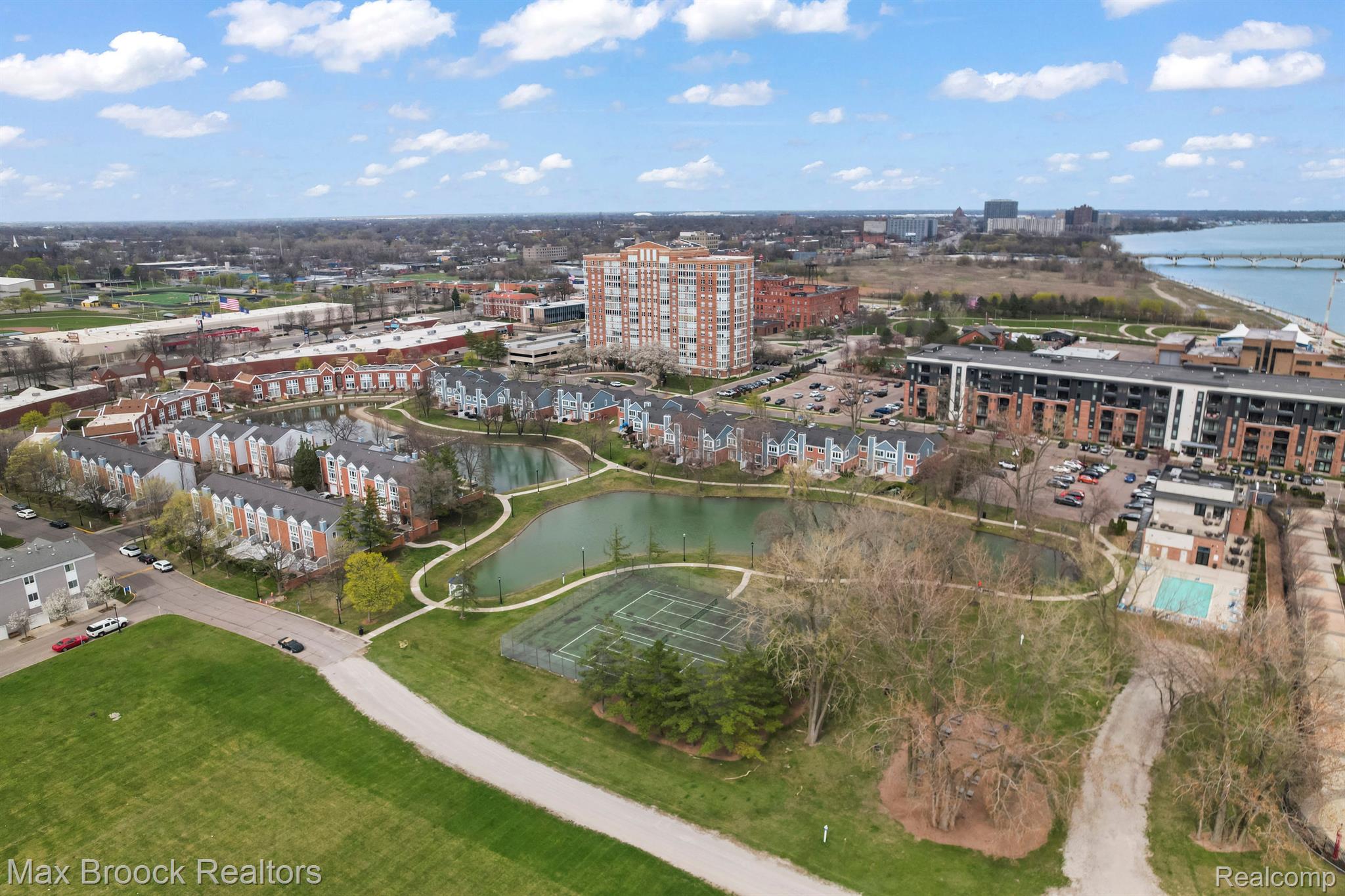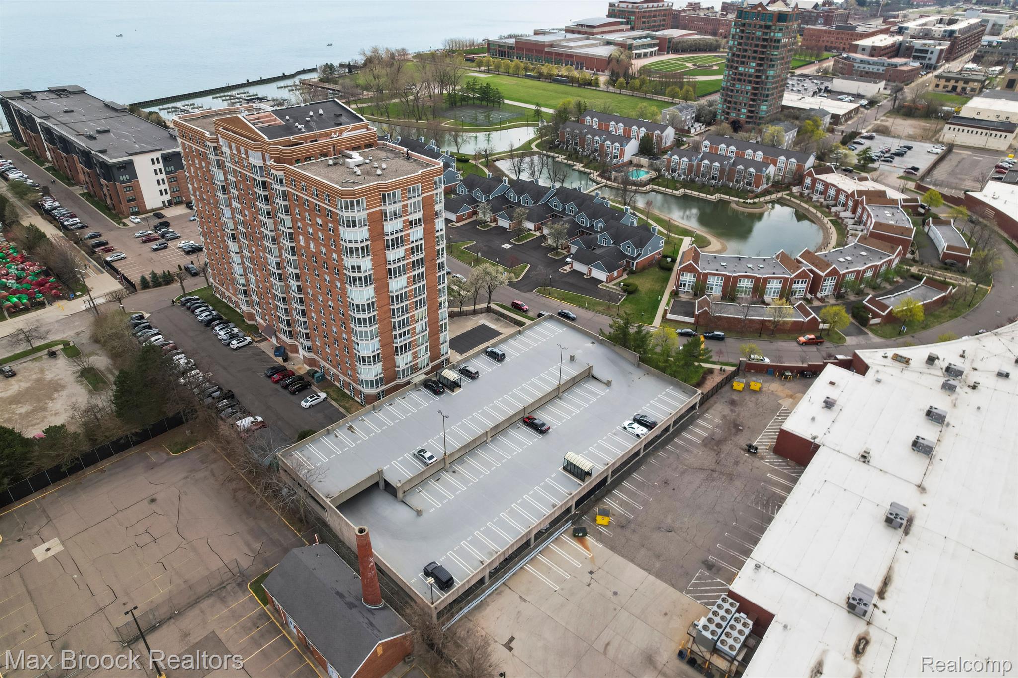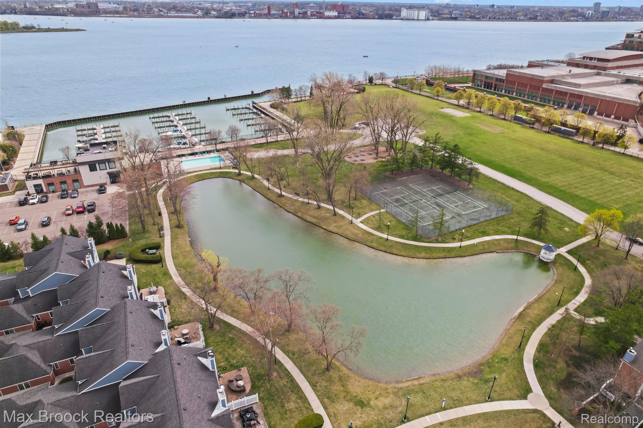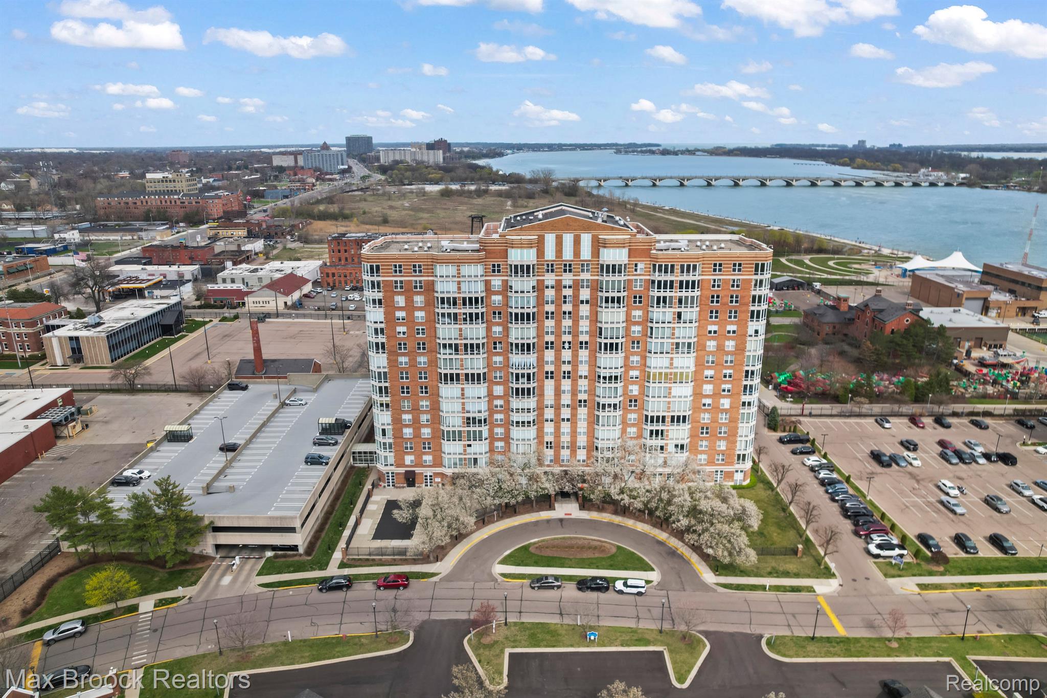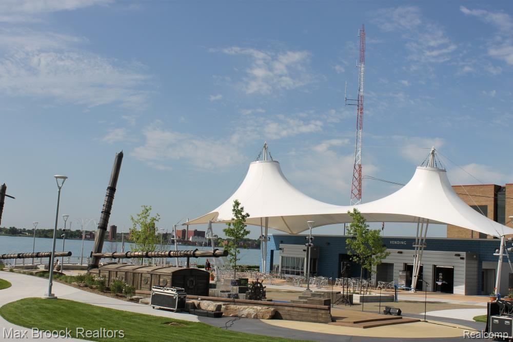 Downtown Detroit is set for another explosive makeover as the Riverfront continues to be transformed into one of the Countries most beautiful waterways. Located perfectly between Belle Isle and Downtown, Harbortown is a gated community comprised of three condo buildings and a variety of townhomes. This neighborhood features 24/7 security, assigned parking, pools, fitness centers, a beautiful pond, tennis courts, private marina, walking paths, and direct riverfront access! This is not just a place to live, THIS is a LIFESTYLE! Perched on the 10th floor of the 15 story tall Great Lakes Tower, sits Unit 1003. This 2 bedroom, 2 bathroom 1,214 square foot corner unit features sweeping views from Canada and the Detroit River, all the way across Downtown Detroit and even directly North over Martin Luther King High School. With only one neighbor, this condo will provide you with a sanctuary of peace. The open concept living area features floor to ceiling windows, hardwood floors, spacious dining room area, and built ins. The updated kitchen features dark wood shaker style cabinets, stone counters, and stainless steel appliances. The current kitchen island is excluded from the sale but gives you the perfect view of what could be. The first bedroom currently acts as the guest room, play room for the grandkids, and office. With double doors, it acts as an extension of the entry way, giving the impression that the unit stretches out right through the windows. The spacious main bathroom has lots of counter space and brand new shower. The primary bedroom has tons of space for your largest bedroom set and then some. Double closets lead to the primary ensuite bathroom with a large vanity and tile shower. The HOA includes water, gas, waste removal, security, pools, tennis courts, exercise room, all common area maintenance inside and outside of the building and parking garage.