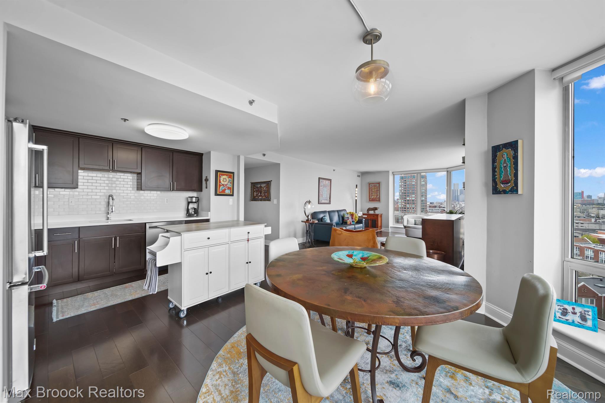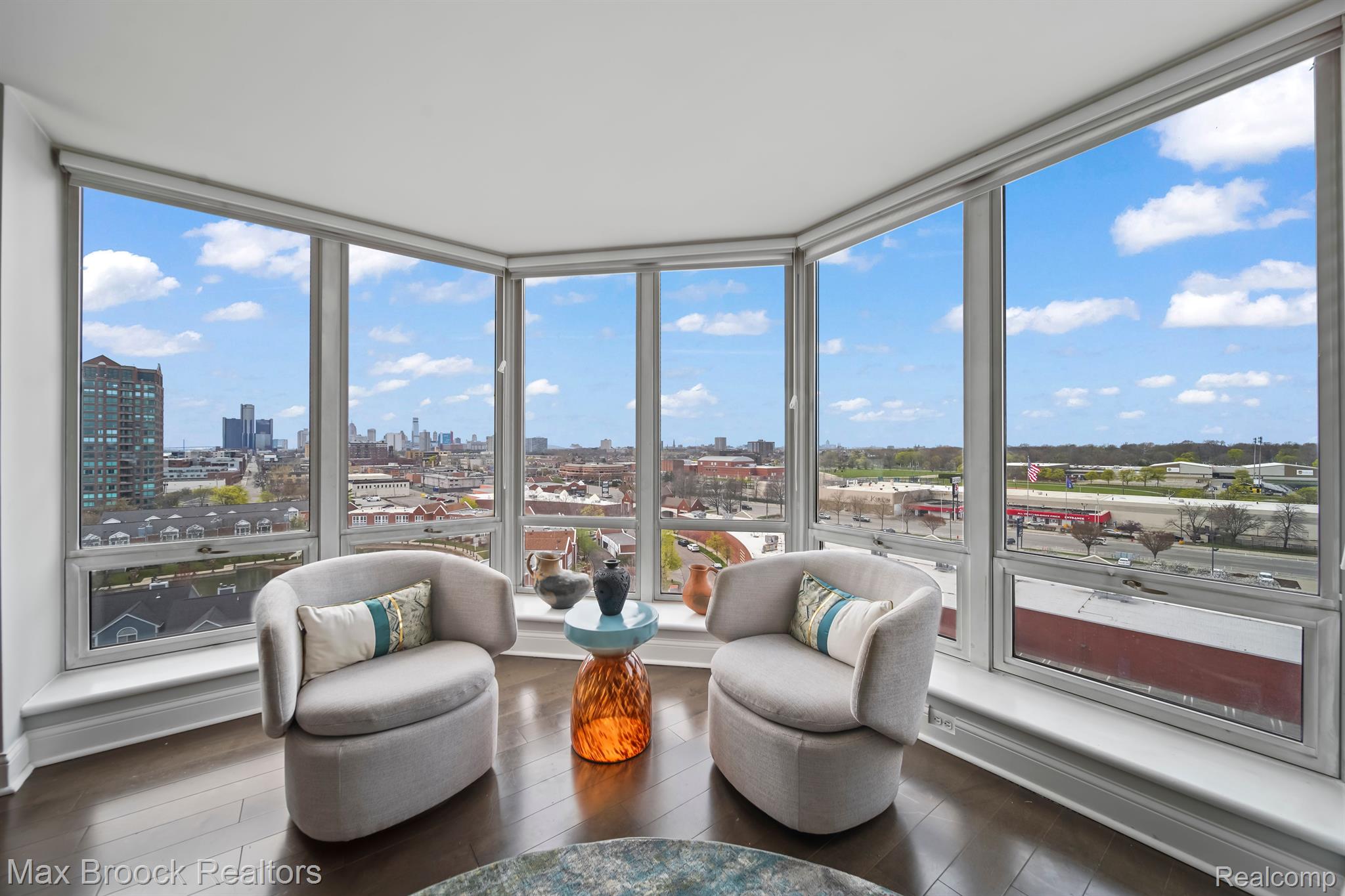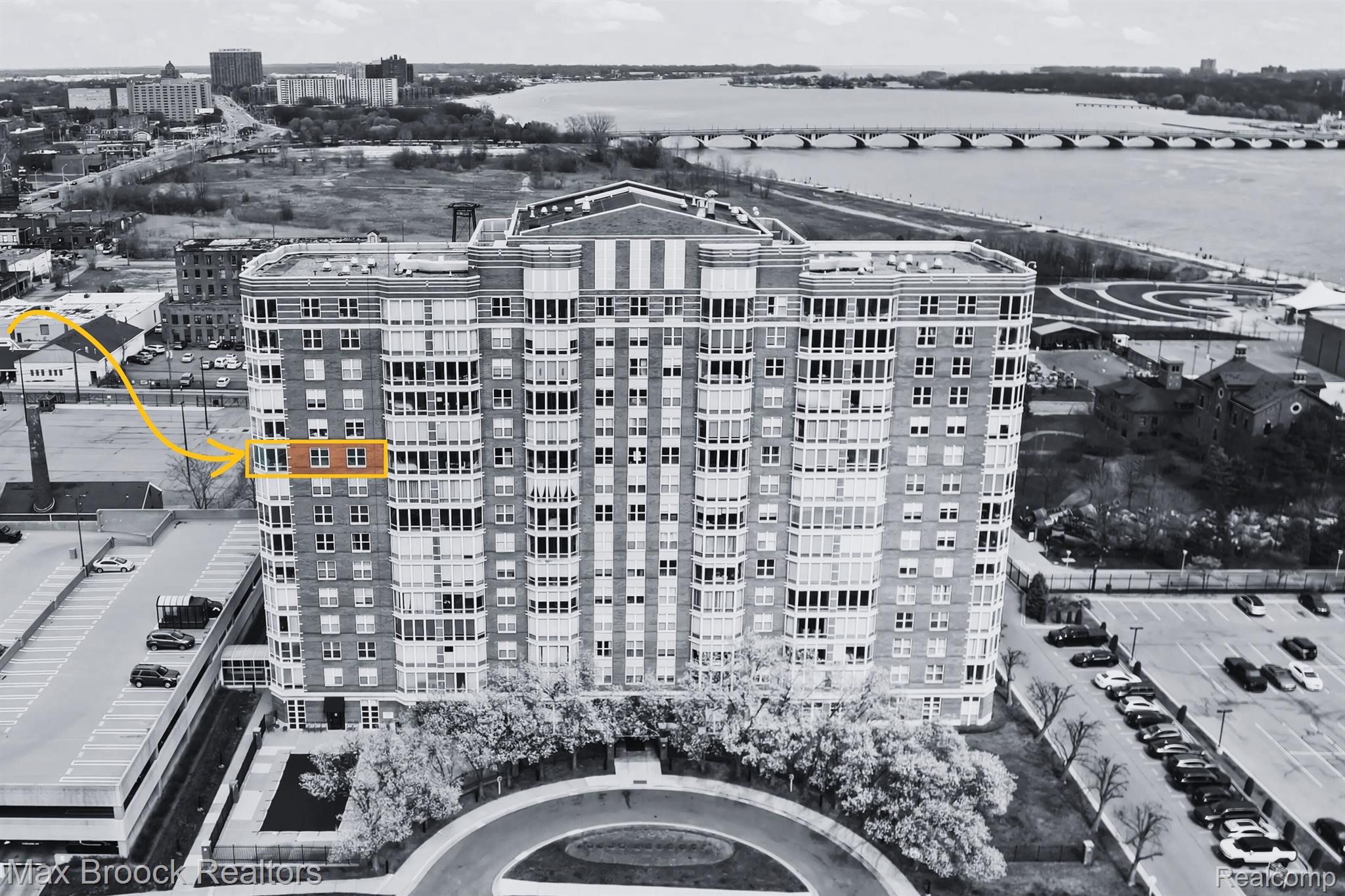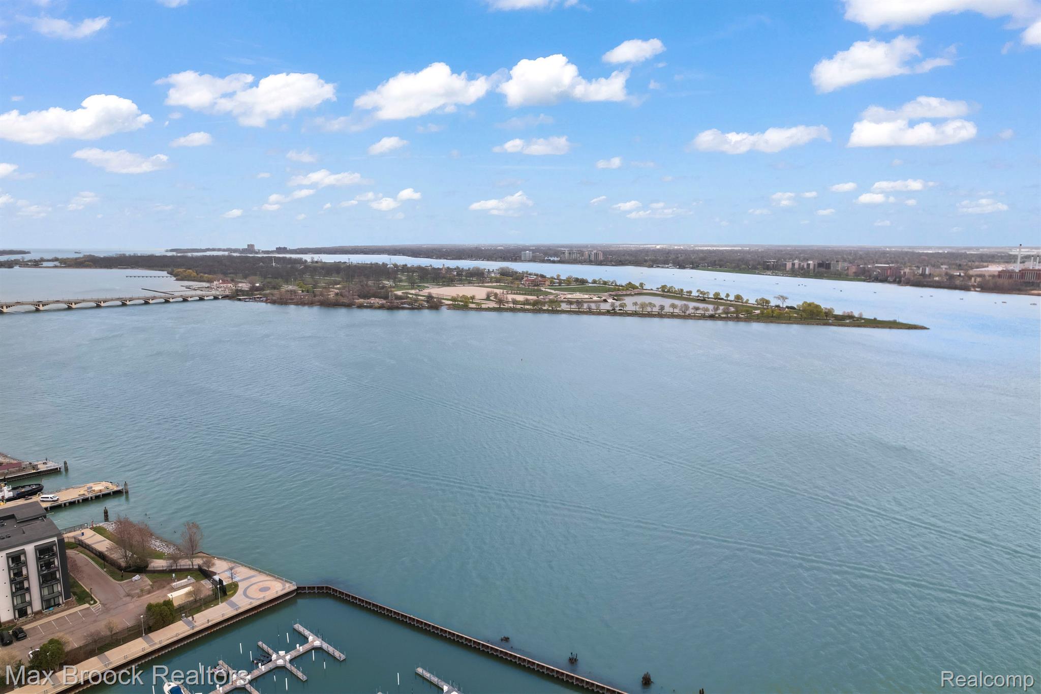 Downtown Detroit is set for another explosive makeover as the Riverfront continues to be transformed into one of the Countries most beautiful waterways. Located perfectly between Belle Isle and Downtown, Harbortown is a gated community comprised of three condo buildings and a variety of townhomes. This neighborhood features 24/7 security, assigned parking, pools, fitness centers, a beautiful pond, tennis courts, private marina, walking paths, and direct riverfront access! This is not just a place to live, THIS is a LIFESTYLE! Perched on the 10th floor of the 15 story tall Great Lakes Tower, sits Unit 1003. This 2 bedroom, 2 bathroom 1,214 square foot corner unit features sweeping views from Canada and the Detroit River, all the way across Downtown Detroit and even directly North over Martin Luther King High School. With only one neighbor, this condo will provide you with a sanctuary of peace. The open concept living area features floor to ceiling windows, hardwood floors, spacious dining room area, and built ins. The updated kitchen features dark wood shaker style cabinets, stone counters, and stainless steel appliances. The current kitchen island is excluded from the sale but gives you the perfect view of what could be. The first bedroom currently acts as the guest room, play room for the grandkids, and office. With double doors, it acts as an extension of the entry way, giving the impression that the unit stretches out right through the windows. The spacious main bathroom has lots of counter space and brand new shower. The primary bedroom has tons of space for your largest bedroom set and then some. Double closets lead to the primary ensuite bathroom with a large vanity and tile shower. The HOA includes water, gas, waste removal, security, pools, tennis courts, exercise room, all common area maintenance inside and outside of the building and parking garage.