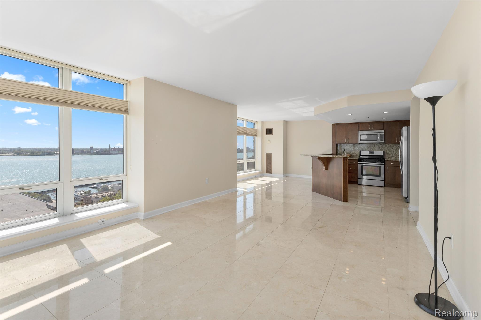WOW... A Must See.....Welcome home to your stunning Luxury Waterfront 14th floor condo. Located in the prestigious Great Lakes Tower, Harbortown. One the most ideal locations in the city. This spacious 1215-square-foot unit features 2 bedrooms/2 full baths. Updated with new blinds, new hardwood flooring in both bedrooms and freshly painted throughout (2022) The condo's open living area boasts large windows, allowing natural light to flood the space. Just minutes from downtown Detroit, overlooks Belle Isle and Canada. You have access to the 3.5-mile Detroit Riverwalk. Amenities at Harbortown include heated pool, fitness center, ample greenways, lighted sidewalks, and 24-hour gated security. 1 Parking Spot included. Gated Community Security Guard Access at Gate. NEZ PROPERTY TAX ABATEMENT AVAILABLE