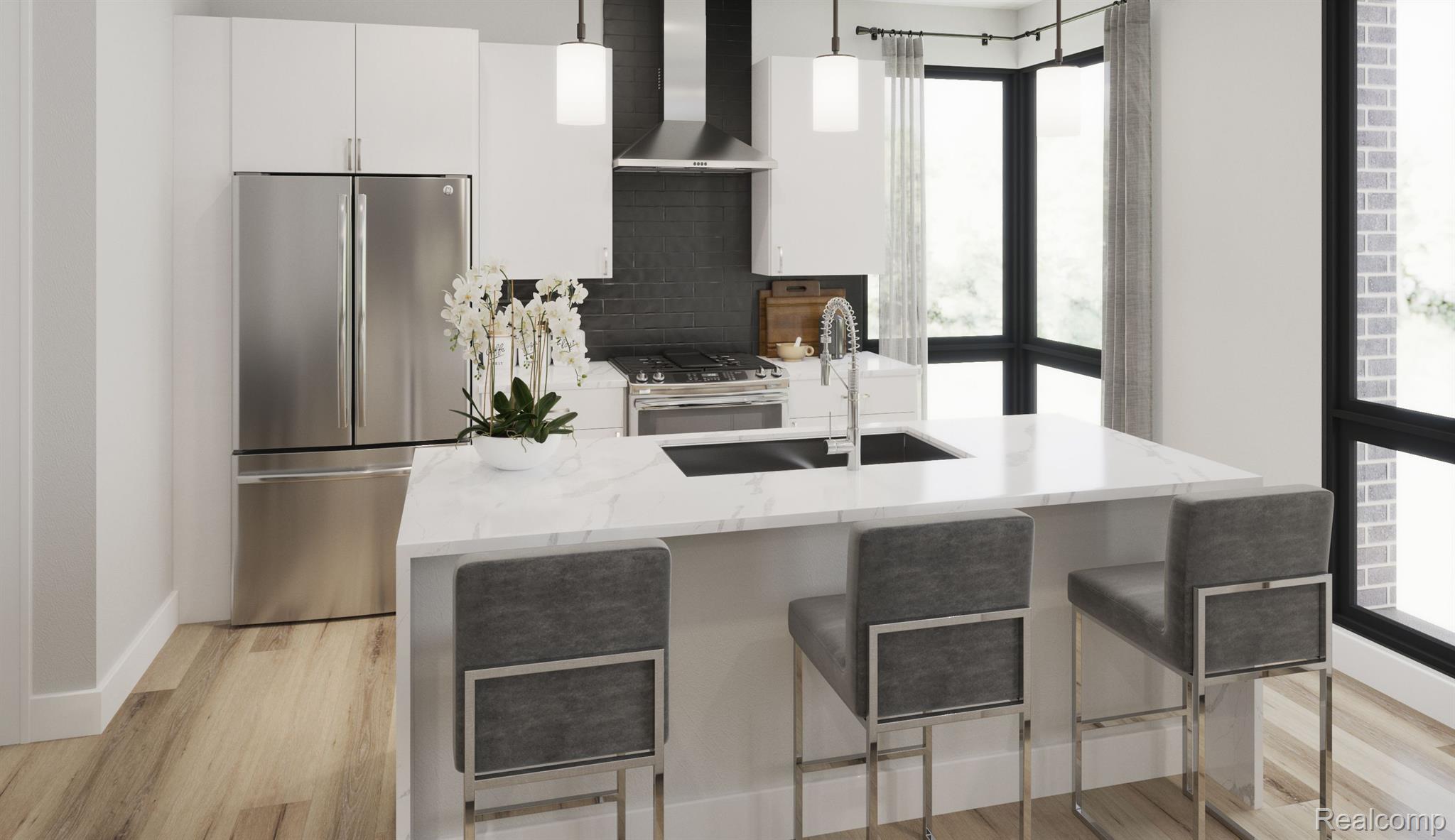 BRUSH PARK NEW CONSTRUCTION! Private condominium community offering a Maintenance-free lifestyle in downtown Detroit’s premier neighborhood, Brush Park. This 2 bed/2.5 bath condo boasts over 1800 sq ft of living space plus 723 sq ft private roof top deck. Ultimate walkable location blocks from numerous conveniences including world-class shopping, dining, fitness centers, sports and entertainment. Highly rated 85 Walk Score® area for walkable access to nearby amenities. Just a 5 minute walk to Little Caesars Arena, and less than a mile to Ford Field, Comerica Park, Detroit Shipping Company, Detroit Opera House, The Belt and more. Hop on a bike or the Q-line for direct access to Campus Martius Park and the Riverfront for downtown events, prime biking trails and scenic views. Located just minutes away from popular neighborhoods including Midtown, Corktown, and the historic Eastern Market. Easy access to I-75, M-10 and Woodward Avenue for quick trips throughout Metro Detroit. Professionally run homeowner’s association and HOA dues that include gas and water services .Stylish lobby entries with porcelain tile flooring, full lite entry doors and glass panel stairway. Lower level amenity with bike racks, dog scrub station and individually assigned storage spaces. High tech security with electronic access system along with secured mail kiosk set up for various delivery services. One and larger two bedroom units available with rooftops that have amazing views of the city. Delivery timeline-to be built. Enjoy a piece of mind with a 2 year warranty on HVAC, electrical, plumbing and mechanicals. Robertson Homes has been building homes in MI for 80 years. HURRY! Be a part of history. Call to ask about 0% down payment financing and the reduced NEZ taxes available for 15 yrs.