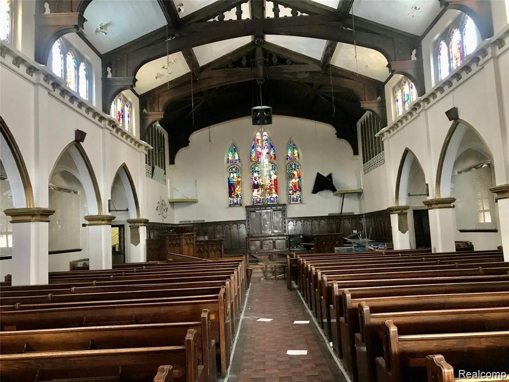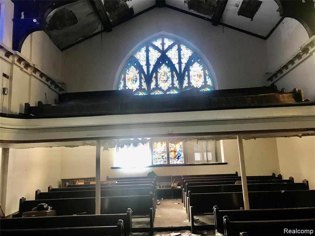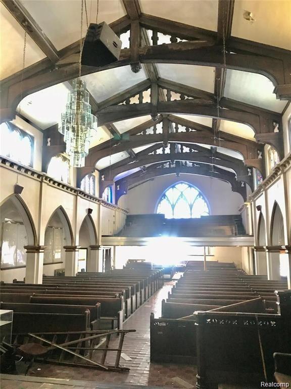 HISTORICAL BUILDING – TRINITY DELIVERANCE CHURCH: This two-story, approximately 23,000 sq. ft. building includes a full basement and seating for around 1,100, including balcony seating. Located near Island View, Indian Village, and Belle Isle, it presents an excellent opportunity for investors. The interior offers endless potential for repurposing as low-income apartments, an art gallery, a modern dance studio, or a banquet center. The building requires rehabilitation, including plumbing, heating, and electrical repairs due to vandalism. A vacant parcel adjacent to the east side of the alley, measuring 150x57, is included for parking. The purchase of the parsonage (house at 728 E. Grand Blvd.) is optional and available for consideration.
