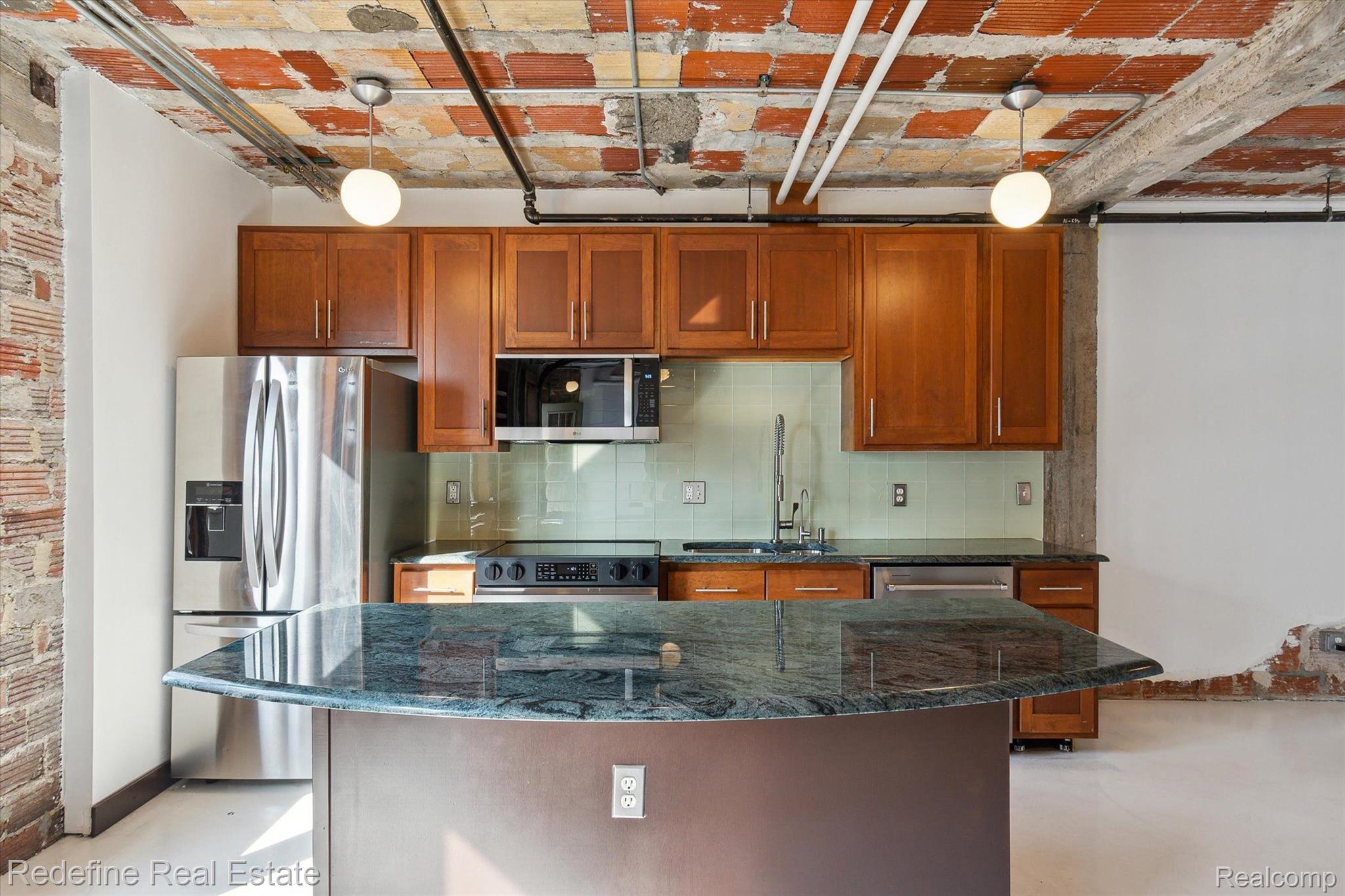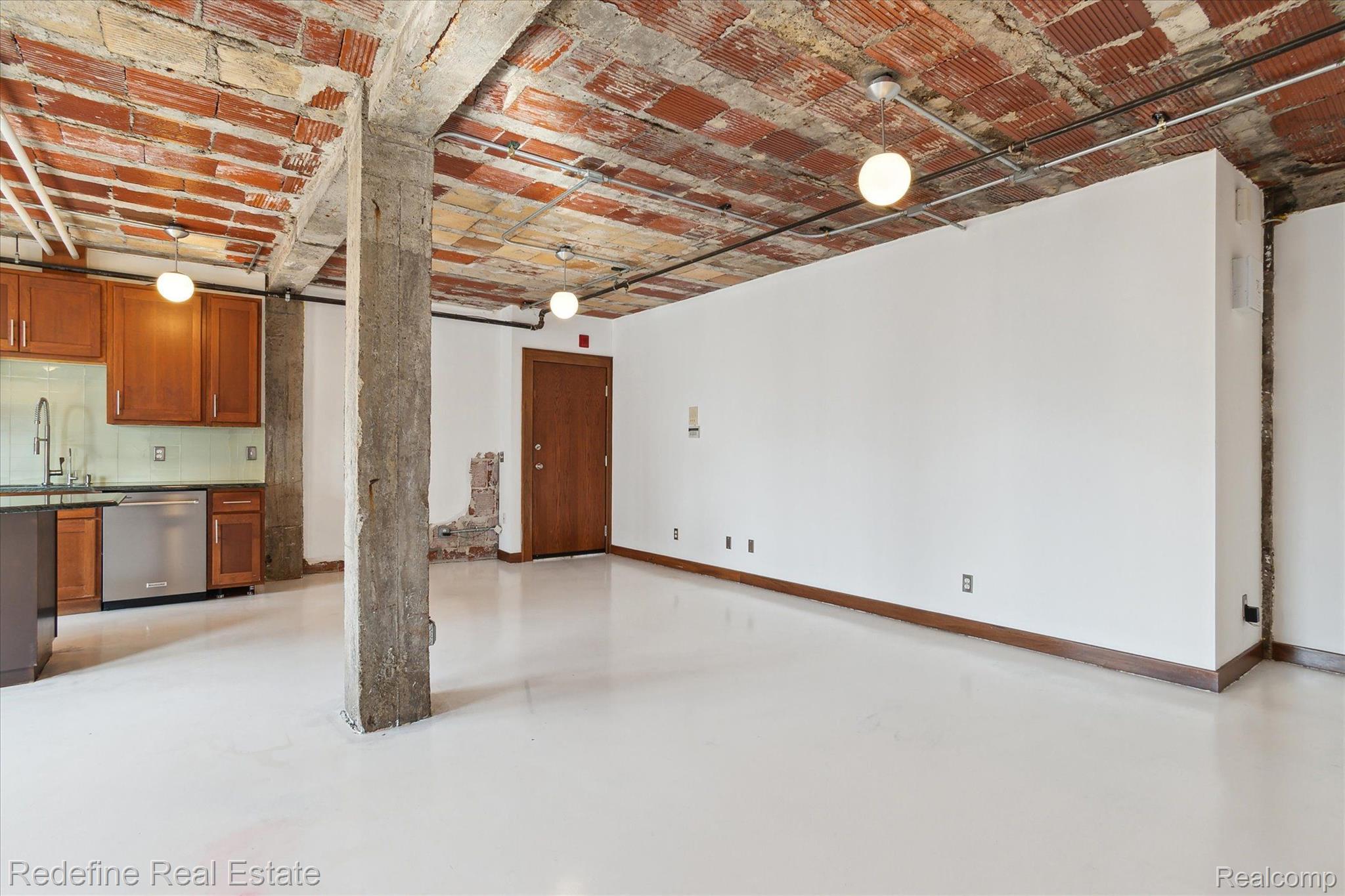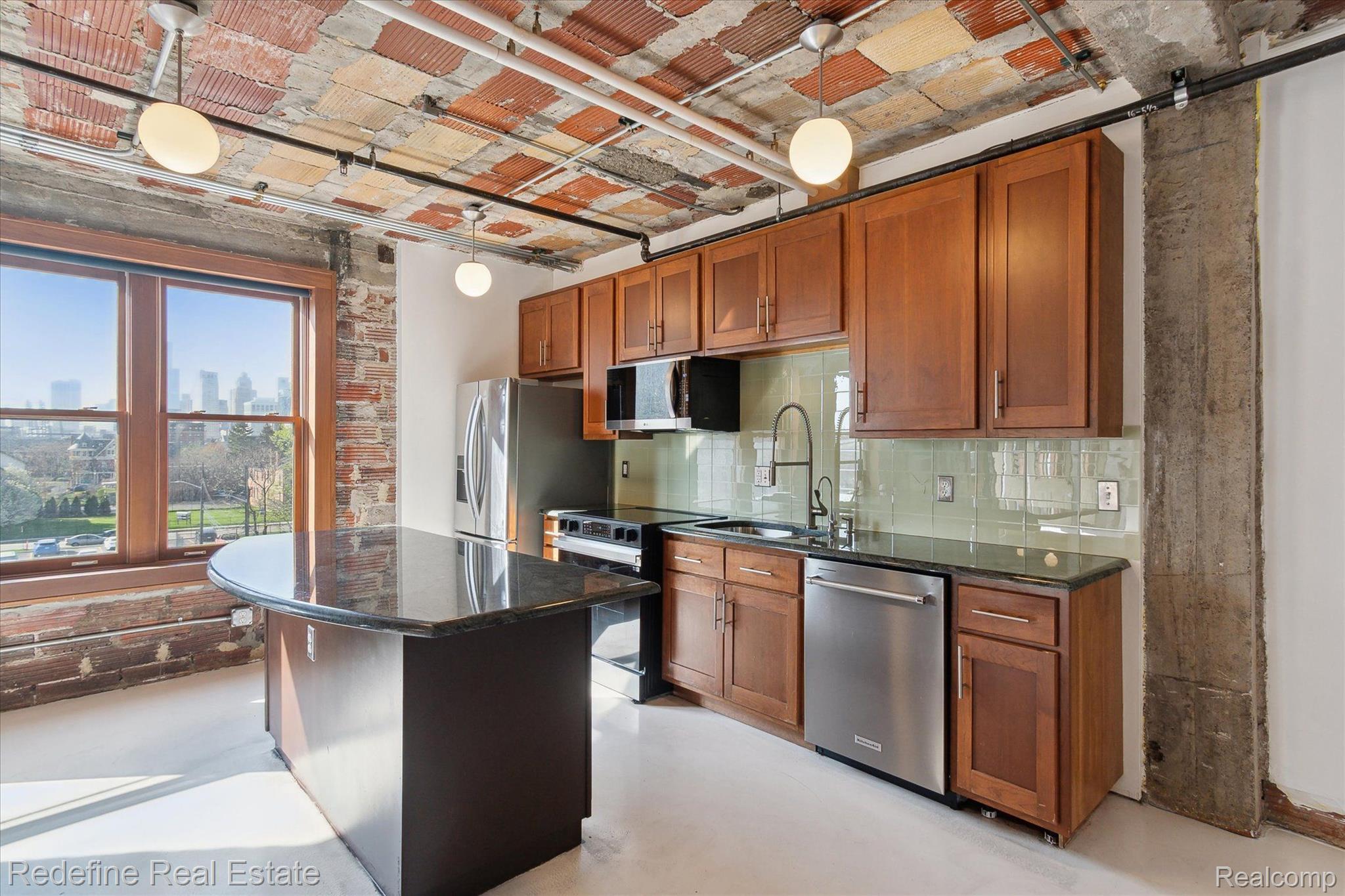 Urban sophistication meets unbeatable location in this stylish Brush Park condo! Nestled in one of Detroit's most sought-after neighborhoods, this modern unit puts you just steps from the best the city has to offer. The interior boasts an open-concept layout with exposed brick accent walls, rustic pillars, and a sleek kitchen complete with stainless steel appliances. The bedroom offers a cozy retreat with generous closet space, while added conveniences like an in-unit washer/dryer, personal garage, gated parking, and secure keyless entry enhance everyday living. And let’s not forget—the view of the Detroit skyline is simply stunning. Enjoy easy access to local favorites like Second Best, Grey Ghost, Bakersfield, Whole Foods, and everything Midtown and Downtown have to offer. Come experience city living at its finest!