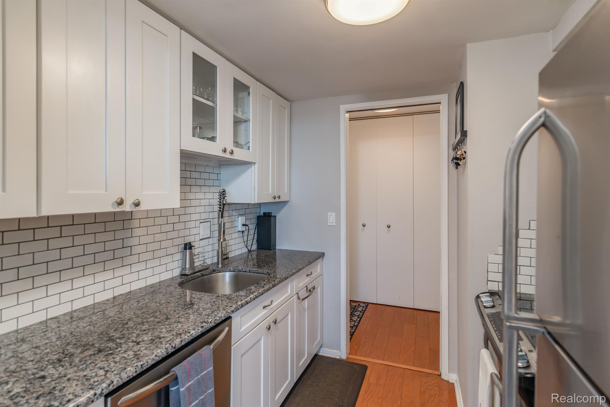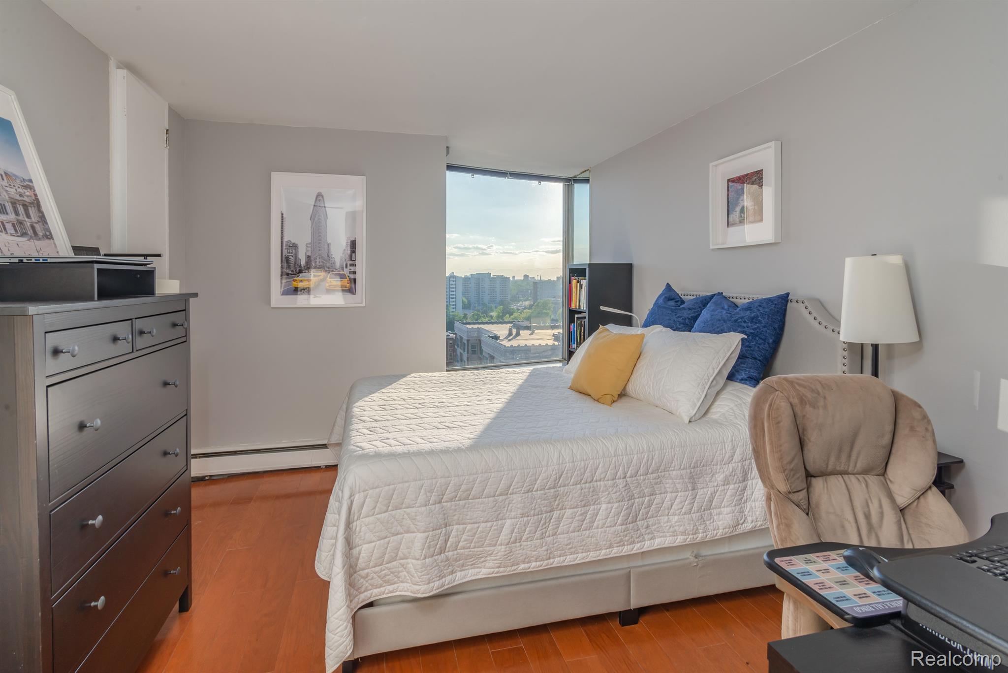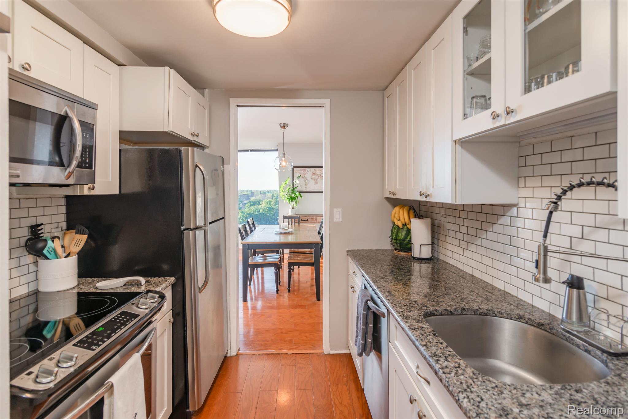 Welcome home to this gorgeous 2 bed/2 bath condo located in the heart of the city. Step inside this 14th floor Shoreline East unit to find gorgeous hardwood floors. The main living area is quite spacious, with plenty of natural light! The eat-in area leads into the kitchen, which features lovely updates, including a neutral color palette, a subway tile backsplash, and stainless steel appliances. Not to mention, there is a wonderful view! The bedrooms are quite large, especially the primary suite which features a private restroom and large closet! By purchasing this unit, you will gain access to the penthouse community room, a terrace that features views of Belle Isle and the Detroit River. Please note that the monthly association fee includes water, heat, building maintenance, on-site management, a 24 hour gatehouse attendant, and best of all, resident, valet and guest parking. Schedule your showing today; this one is priced to sell and will not last long. BTVAI