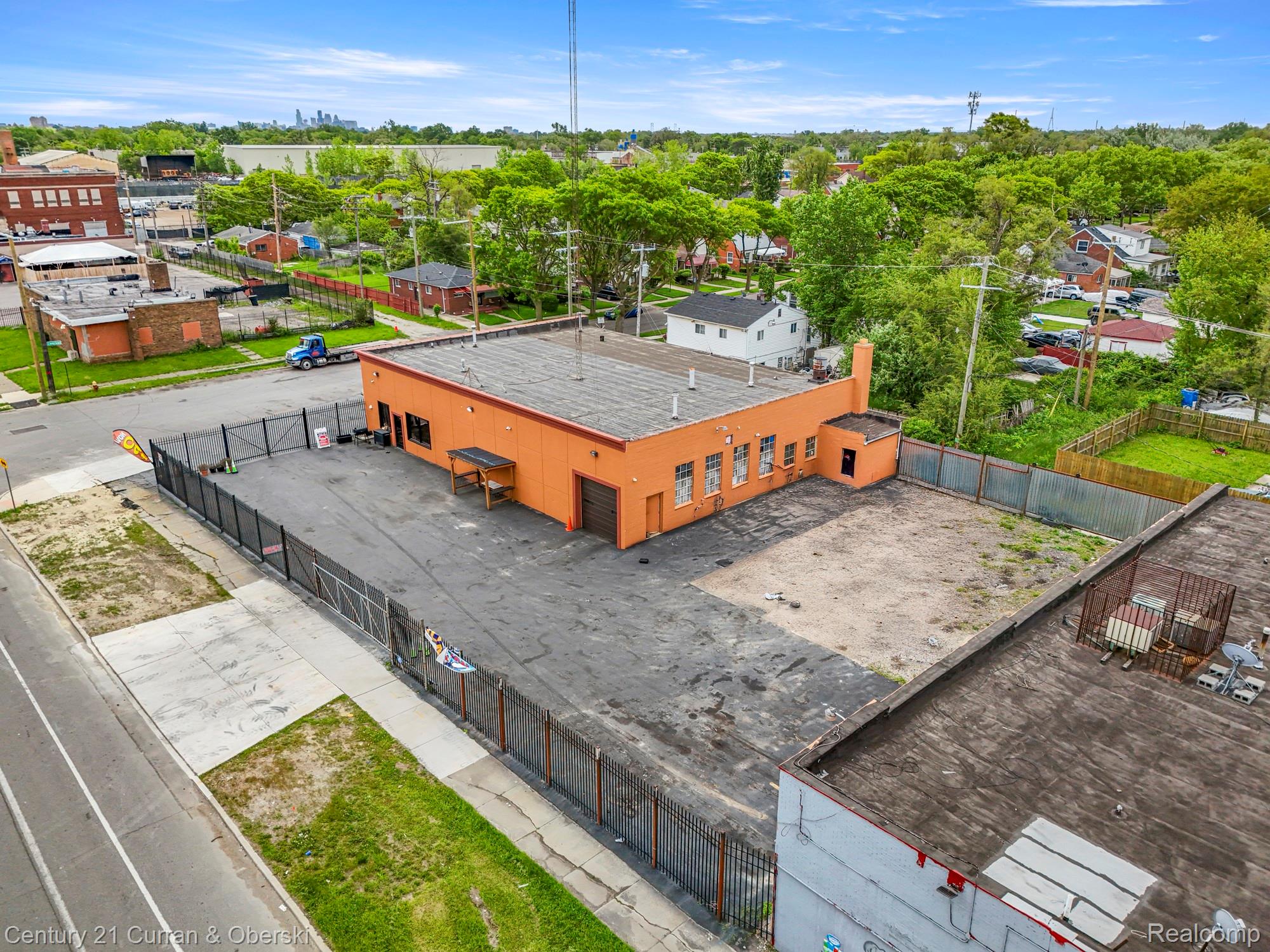 Up and coming Westside Detroit neighborhood. Very close to the new walking and biking path being built by the city of Detroit. Spectacular 4,272 sq ft, 1 story commercial building currently being used as a high level detailing center. Absolutely beautiful exterior surrounded by a stately 8' security fence. This building has 1 full bath and 1/2 bath, kitchen with stove, refrigerator, sink, and microwave. There is a pool table in the lounge room with a huge tropical fish aquarium and several flat screen TVs. In addition, there is a waiting room with lots of comfortable seating and more flat screen TVs. Huge 148x108 lot. All new asphalt parking inside the security fence, newer windows, and a newer roof. One 13' overhead door, and two 9' overhead doors. There is also a paint booth updraft design, and a tool room with two large air compressors. Three brand new ceiling F/A natural gas heaters, and lots of parking inside and outside. There is a concrete block storage room built onto the west side of the building, within the security fencing. Also, there are two outdoor customer seating areas that are covered for those who prefer fresh air, one is within the security fencing and one on the side of the building.