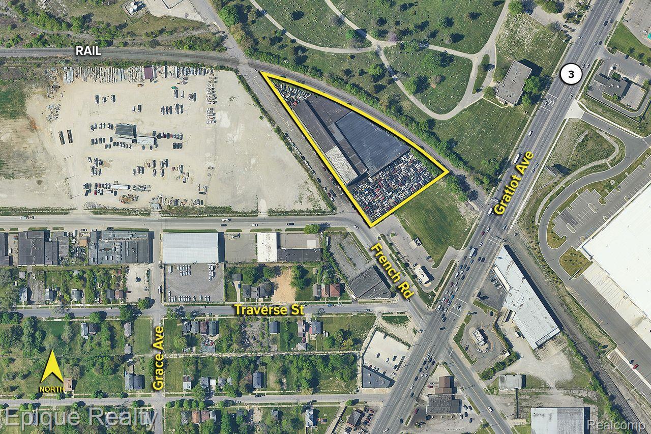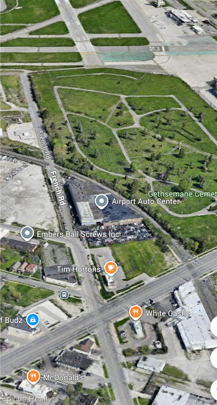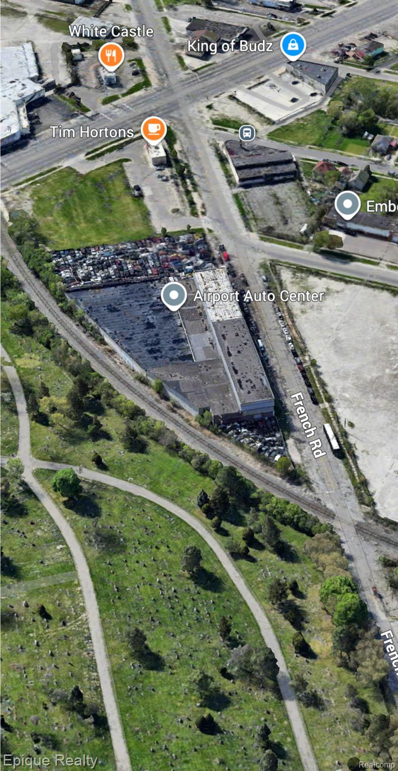 PROPERTY FEATURES •65,000 square feet available •20’-40’ clear height •(4) grade level doors •Includes B & C Auto Salvage License and all equipment •(8) Hoists in auto repair area •High bay •Large front and back yard •Green Zone •Inventory sold separately The property directly abuts a railroad right-of-way (per deed legal description referencing “D T R R R/W”)—ideal for exploring a potential rail spur connection. Airport Proximity: Located adjacent to Detroit Metropolitan Airport (Wayne County), which is less than half a mile away; hence, the property benefits from immediate airport adjacency for logistics or aviation-support usage. Salvage Yard / Auto-Related Uses (Zoning Outlook) City Regulation Overview: Detroit adopted a 2022 zoning text amendment specifically addressing auto-related and salvage yard uses. Certain uses—such as auto dismantling, junk and salvage yards—have been newly prohibited in so-called “Gateway Radial” zones. The amendment removed redundant terminology and restricted these uses in specified zones. Historical Context: A previous executive order (2019–2020) placed a moratorium on new scrap yards, auto dismantlers, and similar operations, citing concerns over crime, blight, and over-concentration in neighborhoods. Though that moratorium expired in 2020, regulatory scrutiny remains intense. Current Municipal Policy: While Detroit no longer strictly limits the number of salvage yards citywide, the zoning amendment and licensing regime function as strong controls. Any proposal for a salvage yard, auto-dismantling yard, or major auto recycling operation likely would be restricted or require special zoning classification approval. 10000 French Rd presents a strategic industrial asset with: Direct rail adjacency, offering the possibility of installing a rail spur for materials transport or intermodal uses. Immediate proximity to Detroit Metro Airport, positioning the site well for aviation logistics, freight forwarding, or maintenance operations. Zoned industrial and located in a context where