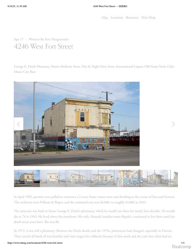Who wants to be a part of Detroits rich history and become the new owner of the original George E. Doyle’s pharmacy? This property has had many iterations over the years you can read them in the photo section. This property is in a prime location right near the new Gordy Howe bridge but needs a full gut rehab, new roof etc. Sold AS IS BATVAI