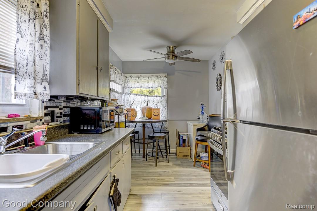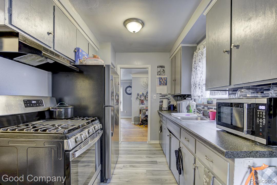Well-maintained brick ranch with great investment potential featuring a spacious layout, full basement, and a large fenced yard. The bright entry living room welcomes you with gleaming hardwood floors and plenty of space to relax or entertain. Just off the main area, the eat-in kitchen offers stainless steel appliances, good cabinet storage, and a cozy breakfast nook by the bay window. Down the hall, three comfortable bedrooms share a classic tiled full bath. The full basement adds even more versatility with a half bath, laundry area, and tons of extra storage. Out back, enjoy a generously sized fenced yard with mature trees and a covered porch—perfect for outdoor living. Long-term tenant currently on a month-to-month lease and would love to stay. Great opportunity for investors seeking steady rental income. Welcome Home!