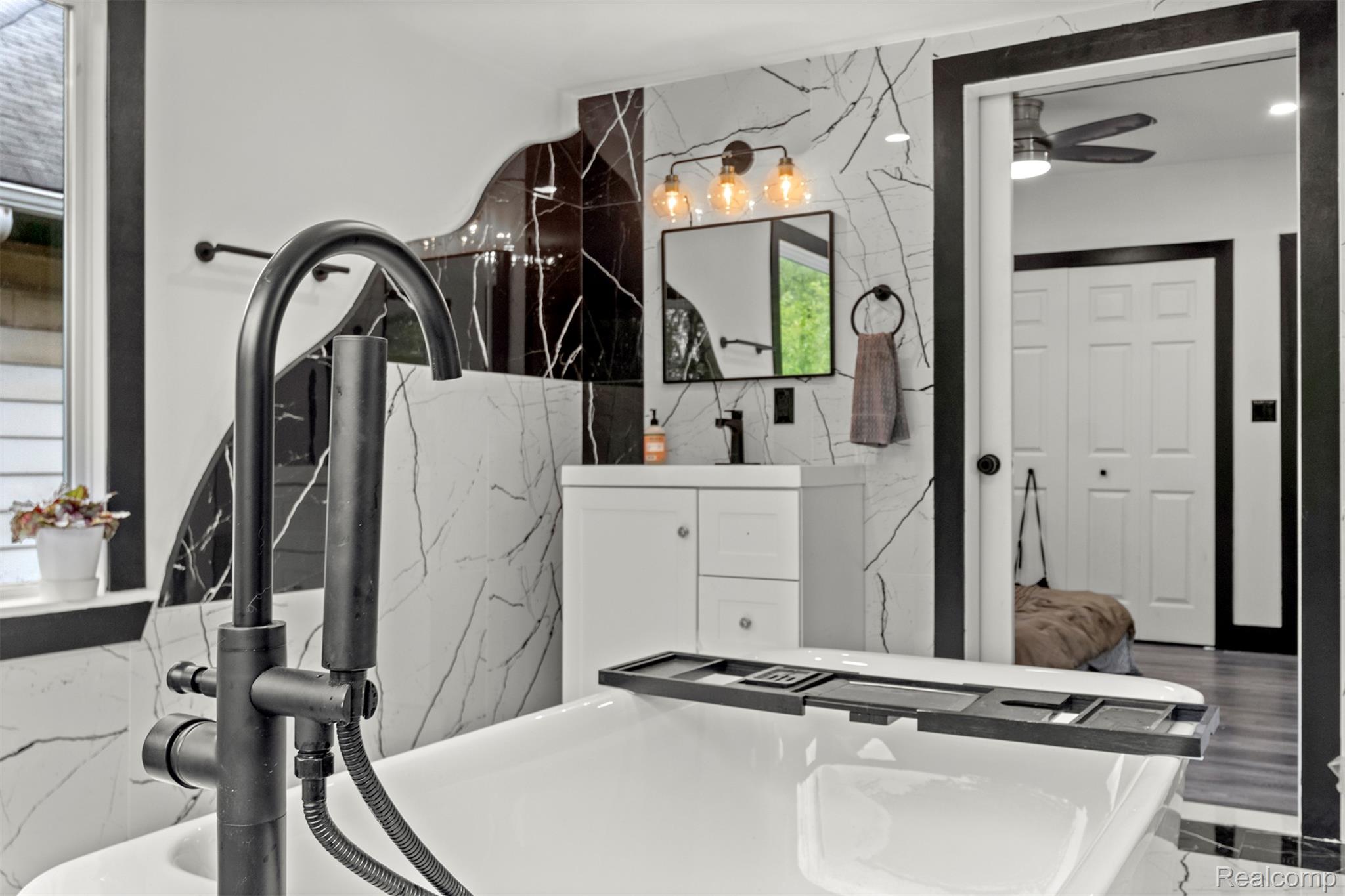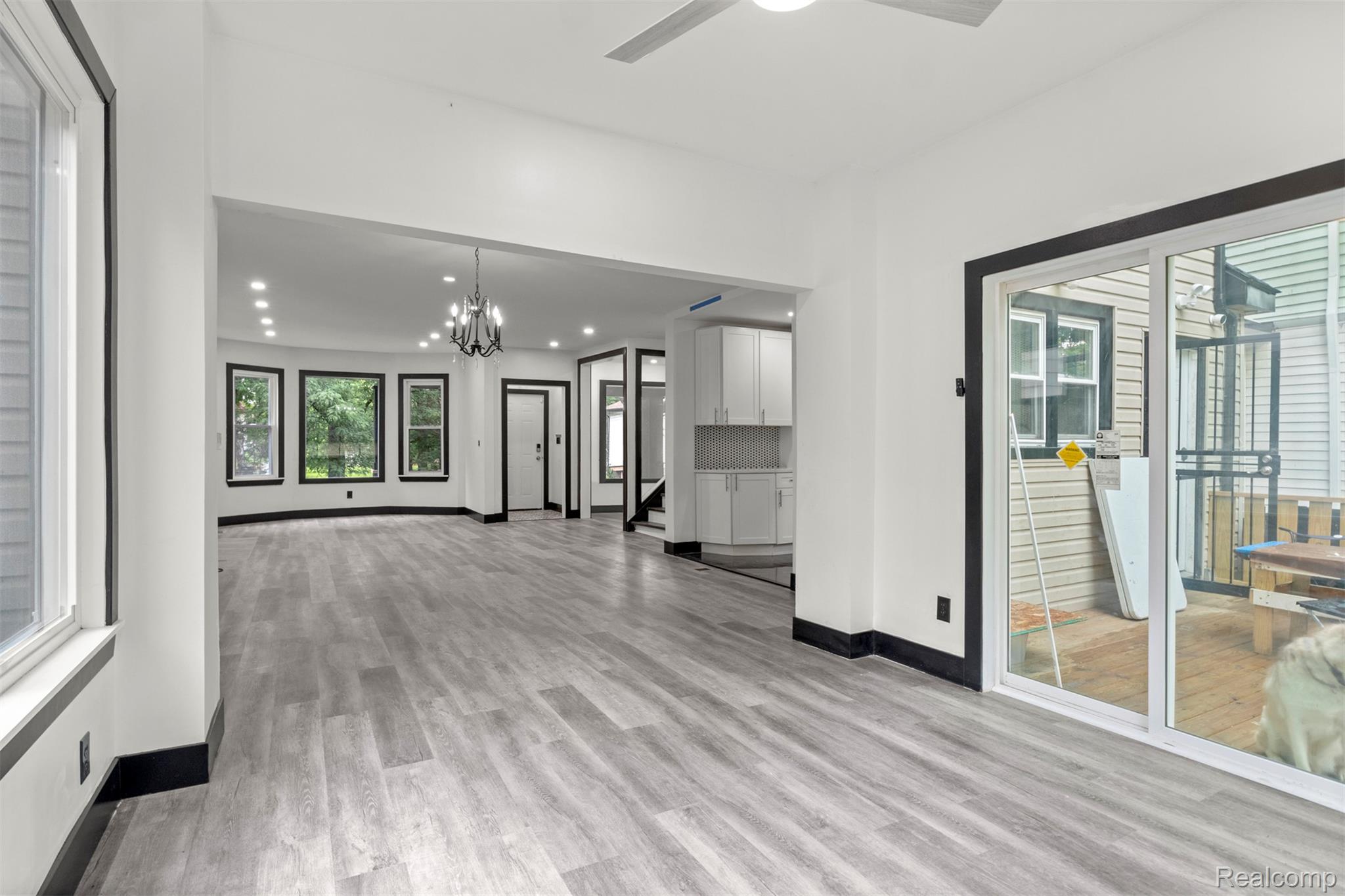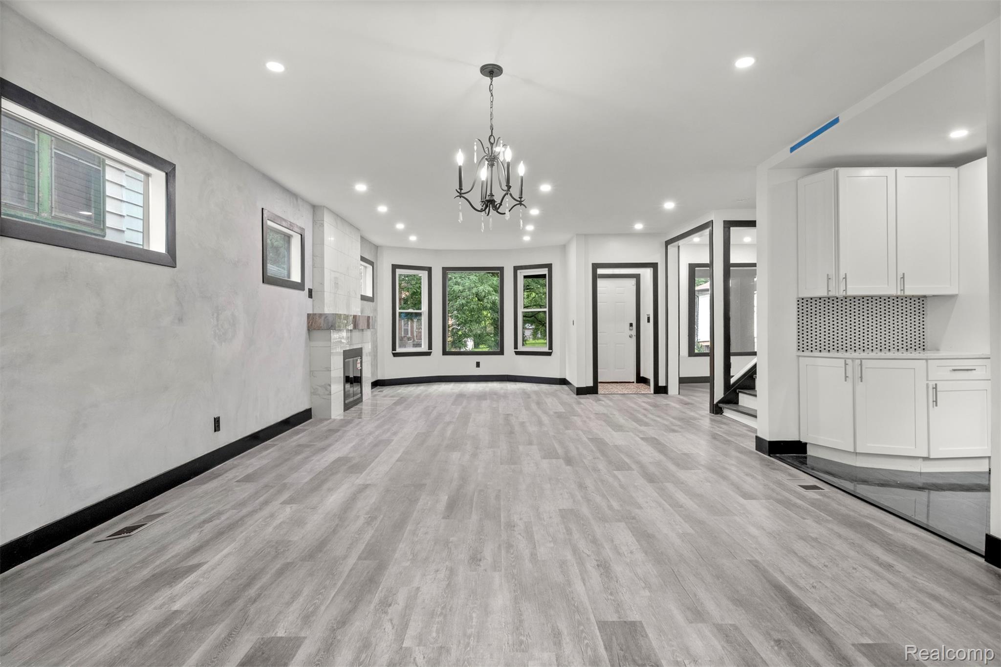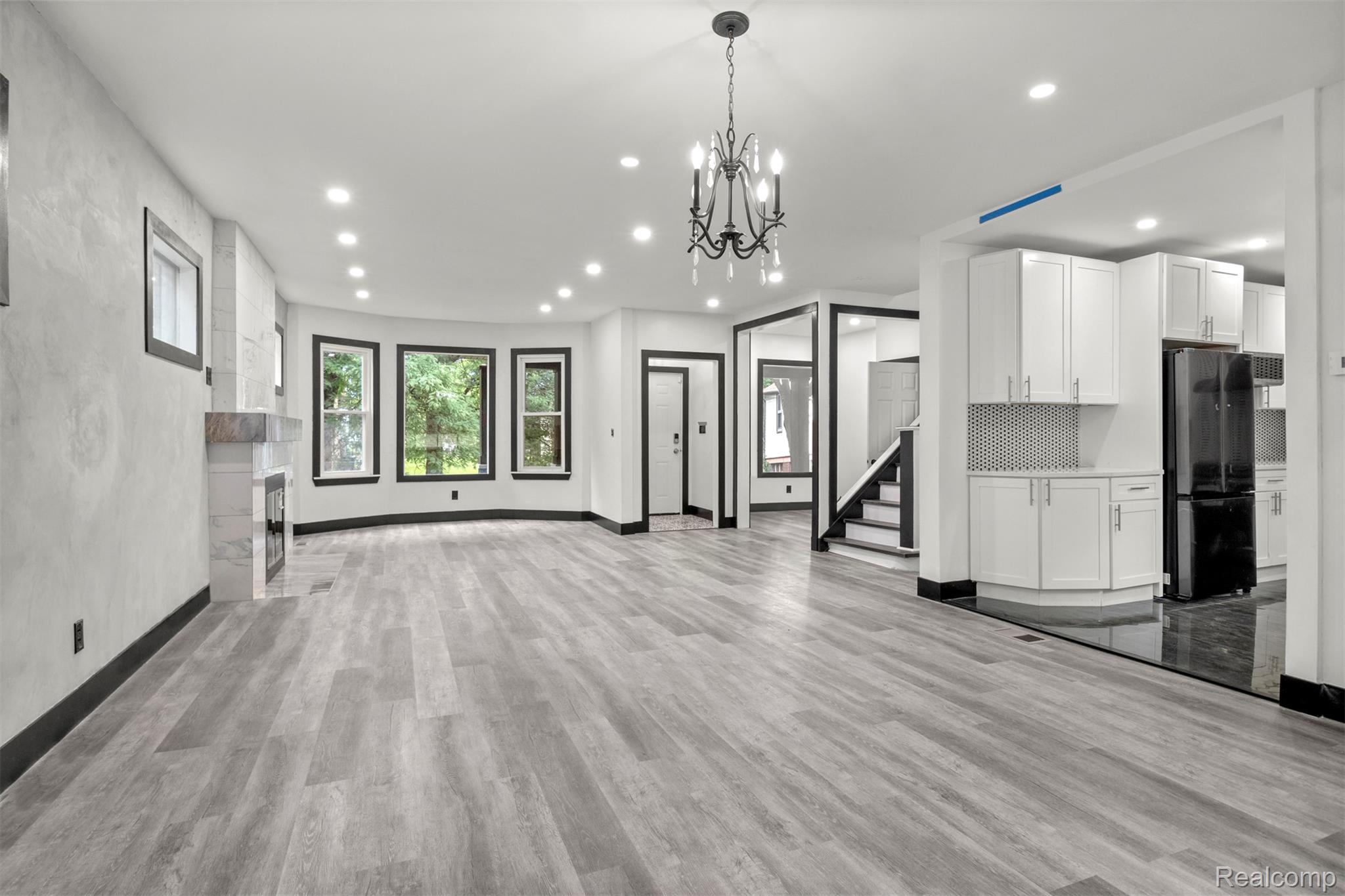 Originally constructed in 1909, this home underwent a full renovation in 2023, blending historic charm with modern upgrades. It features two spacious primary suites and three additional generously sized bedrooms, all offering ample closet space. There are three full bathrooms and a convenient half bath. The property boasts updated electrical and plumbing systems, along with new vinyl flooring throughout. Comfort is ensured year-round with two central air conditioning units and central heating. A welcoming covered front porch and keyless entry lead into a bright and open first floor, filled with natural light. The living room showcases a tiled, wood-burning fireplace, accented by a polished Venetian plaster feature wall. A half bath is also located on this level. At the back of the home, a large sunroom opens onto a sizable deck through sliding glass doors, perfect for entertaining. The modern kitchen is outfitted with soft-close cabinetry, quartz countertops, a garbage disposal, and brand-new Samsung stainless steel appliances—including a dishwasher. Upstairs on the second floor, you’ll find four well-proportioned bedrooms and two full bathrooms. One of the primary suites includes a luxurious en-suite bathroom with a soaking tub, generous closet space, and a ceiling fan. The remaining bedrooms share a spacious full bath with a washer and dryer included. The third floor houses a second primary suite complete with a private bath, expansive closets, and pull-down attic access for additional storage. The basement offers built-in shelving for extra storage needs. Outside, a two-car garage with alley access features a remote-controlled gate, and there's additional off-street parking behind the garage. The entire backyard is fully fenced, offering both privacy and security. This move-in-ready home combines classic character with thoughtful, modern finishes—perfect for comfortable everyday living. BATVAI