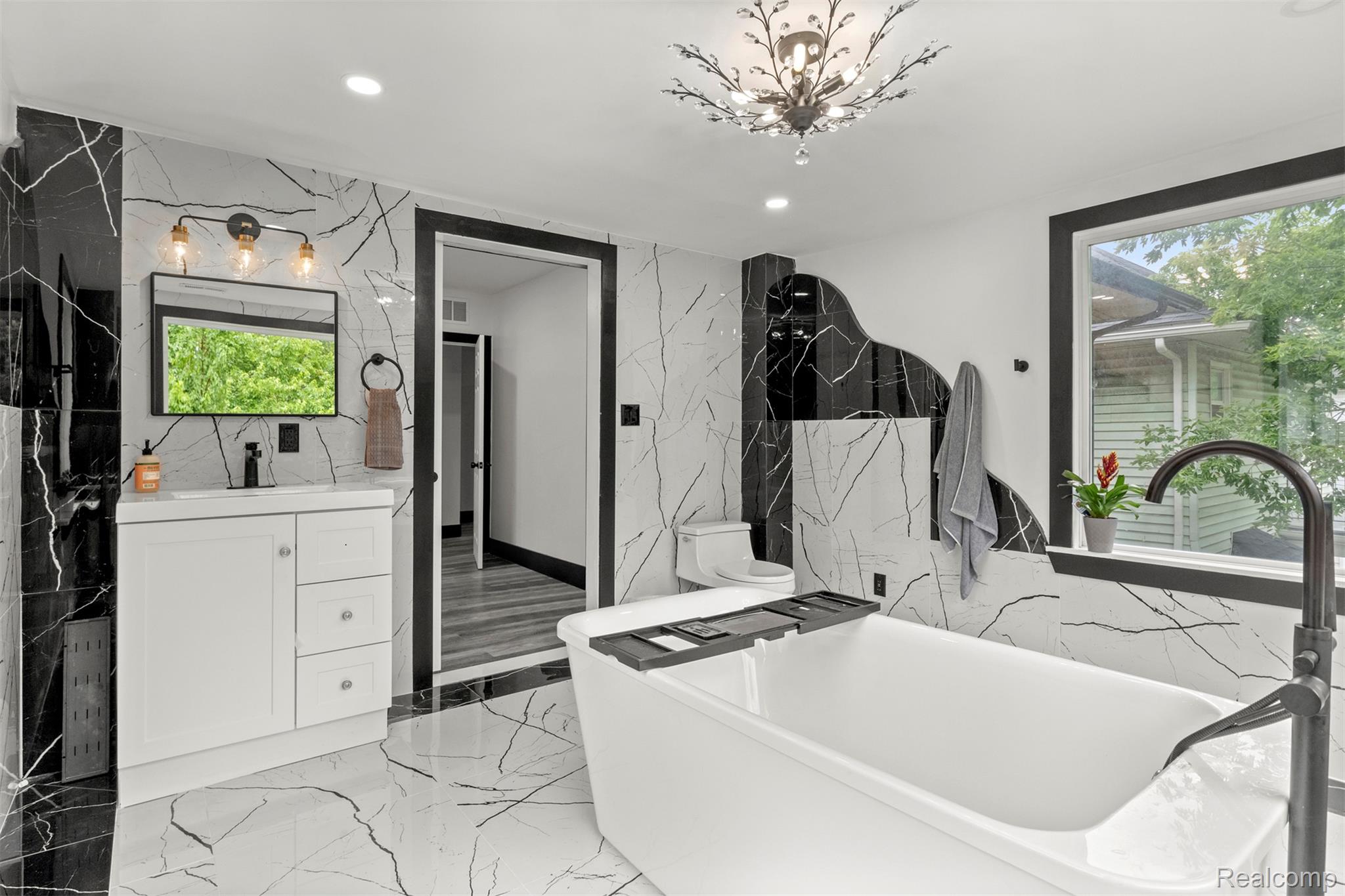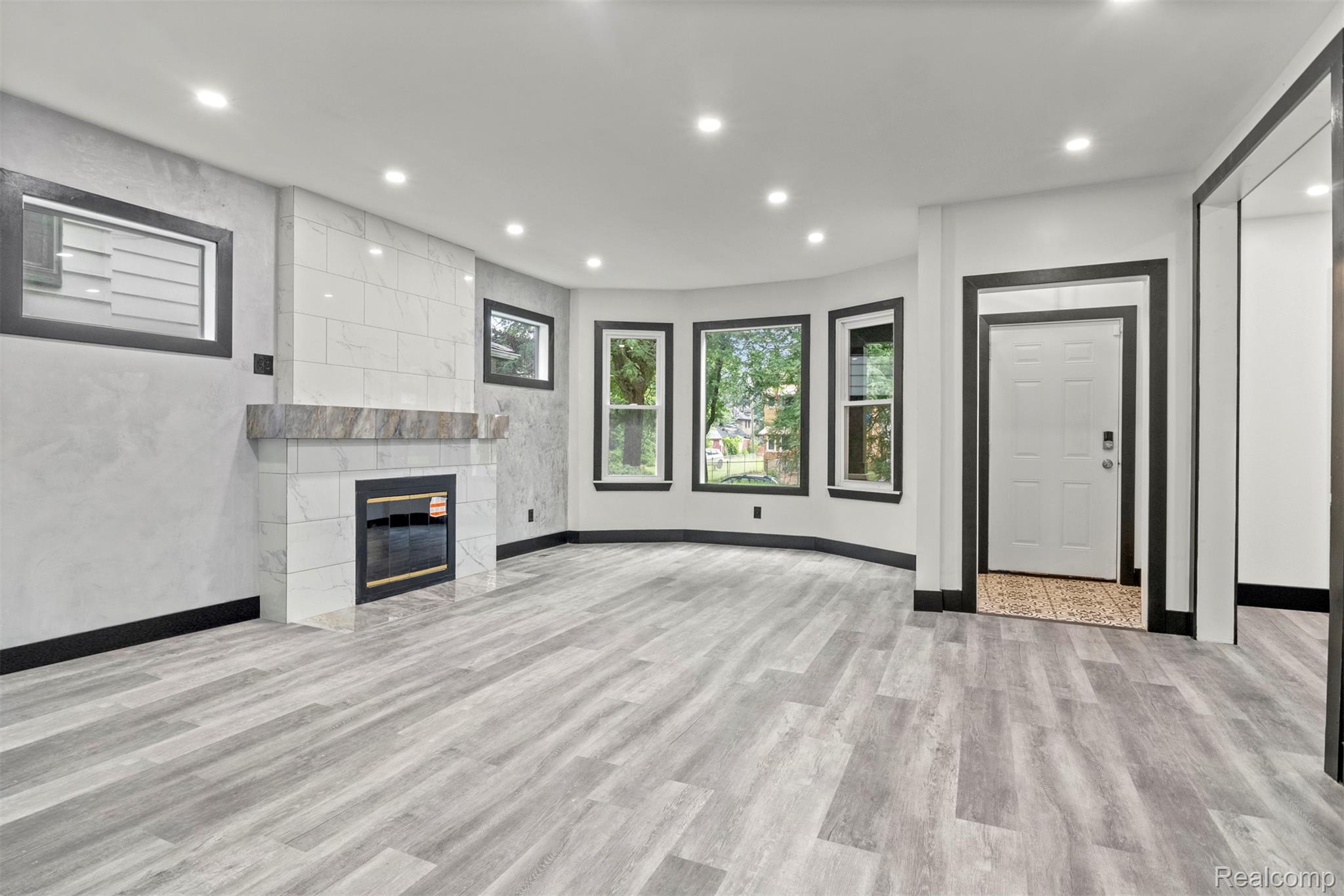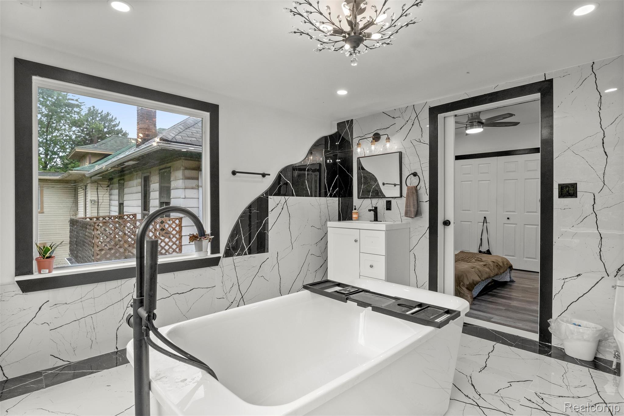 Originally constructed in 1909, this home underwent a full renovation in 2023, blending historic charm with modern upgrades. It features two spacious primary suites and three additional generously sized bedrooms, all offering ample closet space. There are three full bathrooms and a convenient half bath. The property boasts updated electrical and plumbing systems, along with new vinyl flooring throughout. Comfort is ensured year-round with two central air conditioning units and central heating. A welcoming covered front porch and keyless entry lead into a bright and open first floor, filled with natural light. The living room showcases a tiled, wood-burning fireplace, accented by a polished Venetian plaster feature wall. A half bath is also located on this level. At the back of the home, a large sunroom opens onto a sizable deck through sliding glass doors, perfect for entertaining. The modern kitchen is outfitted with soft-close cabinetry, quartz countertops, a garbage disposal, and brand-new Samsung stainless steel appliances—including a dishwasher. Upstairs on the second floor, you’ll find four well-proportioned bedrooms and two full bathrooms. One of the primary suites includes a luxurious en-suite bathroom with a soaking tub, generous closet space, and a ceiling fan. The remaining bedrooms share a spacious full bath with a washer and dryer included. The third floor houses a second primary suite complete with a private bath, expansive closets, and pull-down attic access for additional storage. The basement offers built-in shelving for extra storage needs. Outside, a two-car garage with alley access features a remote-controlled gate, and there's additional off-street parking behind the garage. The entire backyard is fully fenced, offering both privacy and security. This move-in-ready home combines classic character with thoughtful, modern finishes—perfect for comfortable everyday living. BATVAI