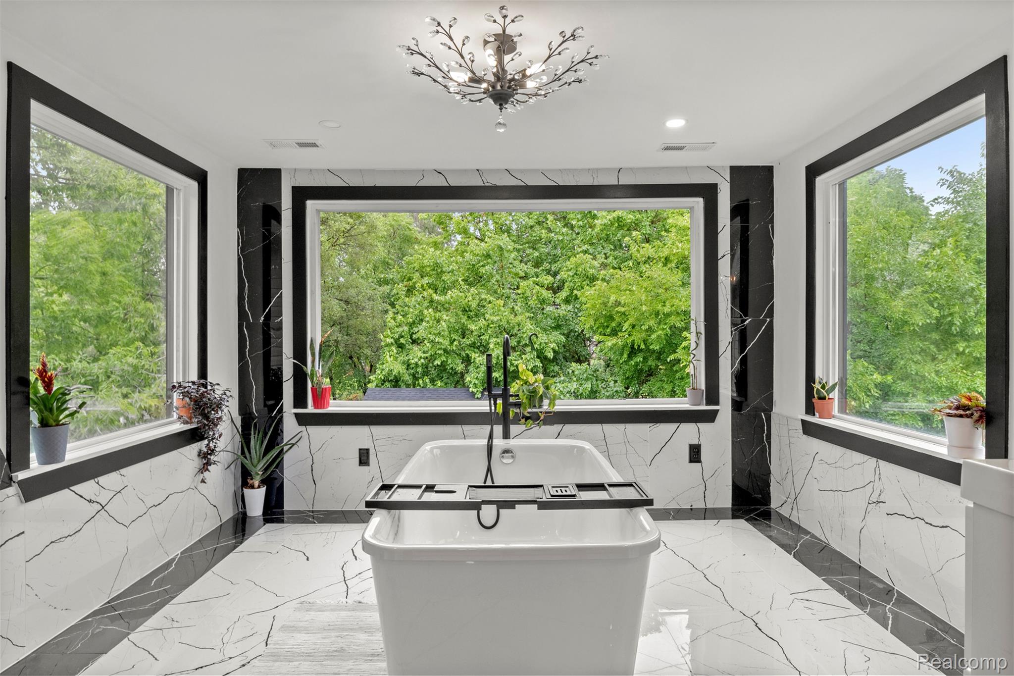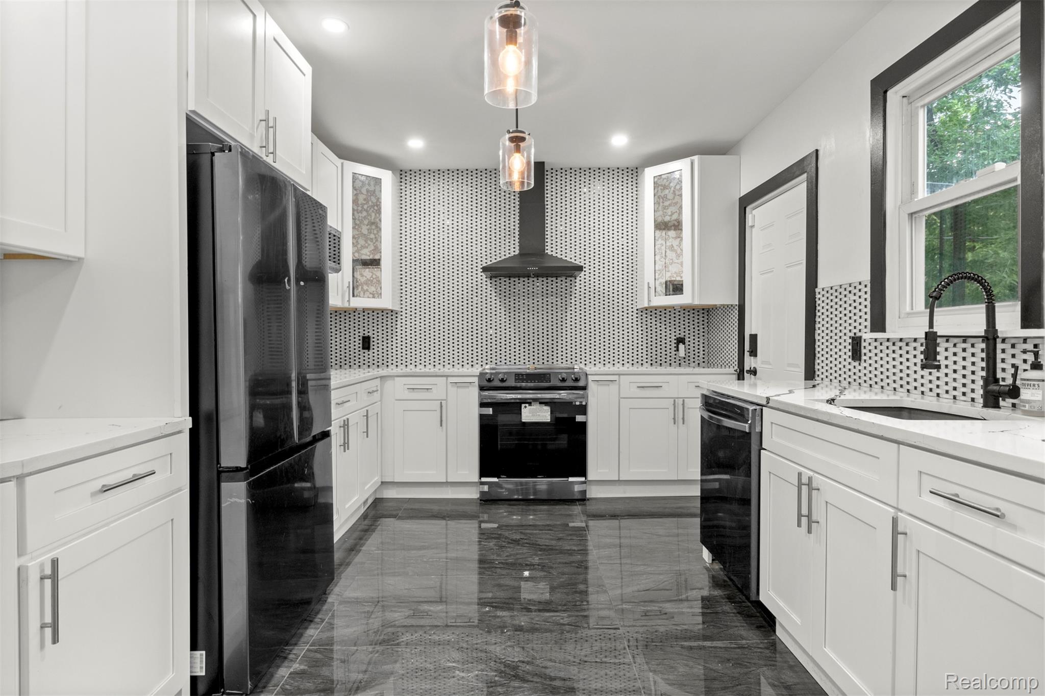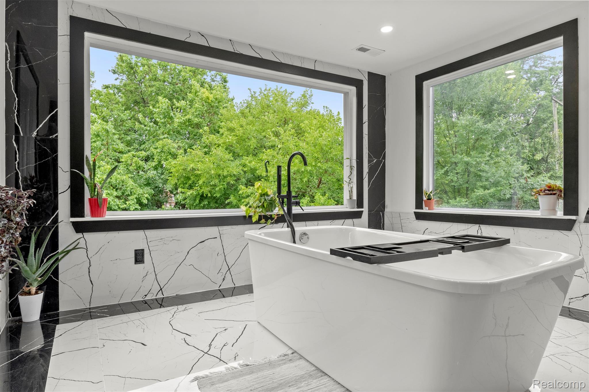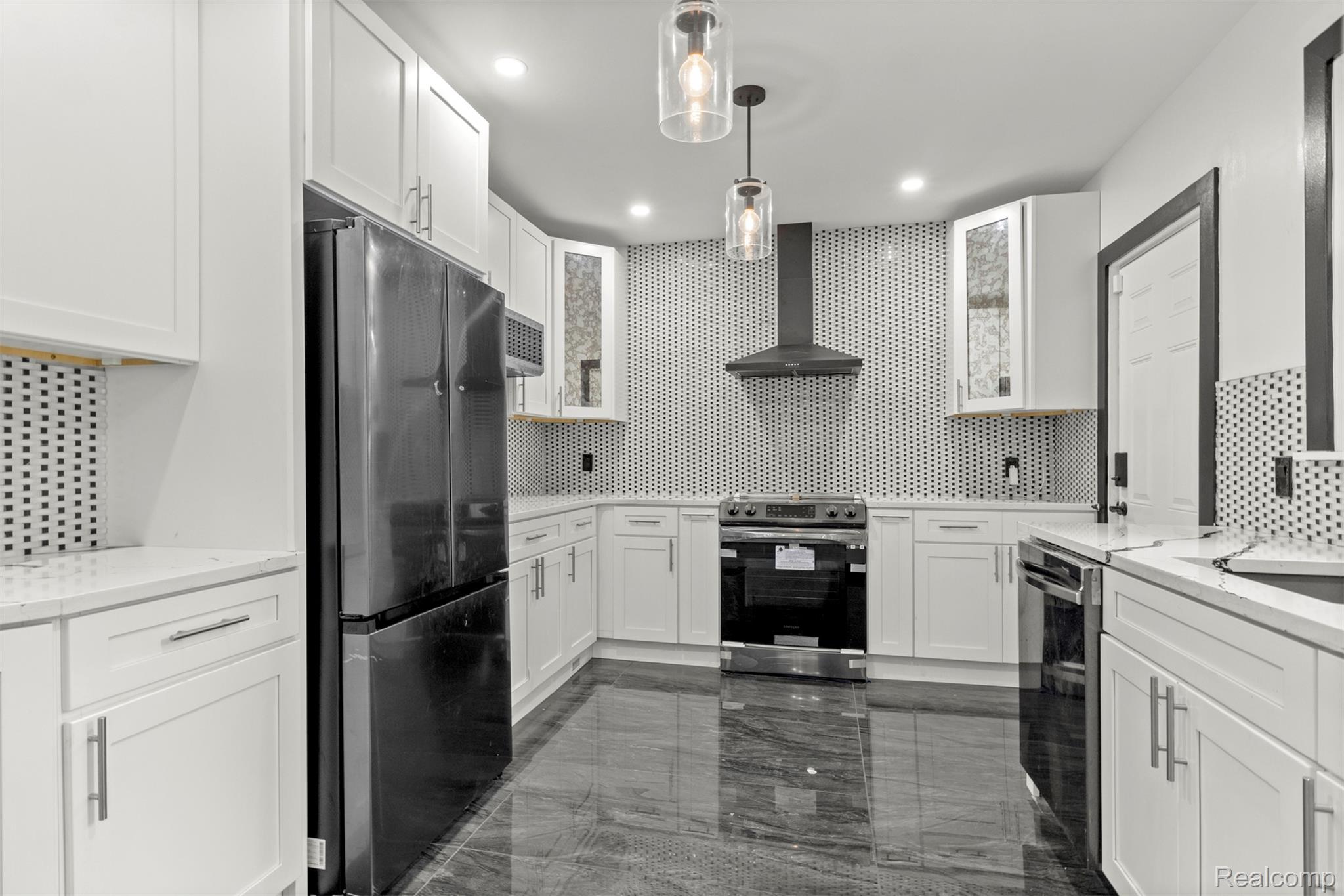 Originally constructed in 1909, this home underwent a full renovation in 2023, blending historic charm with modern upgrades. It features two spacious primary suites and three additional generously sized bedrooms, all offering ample closet space. There are three full bathrooms and a convenient half bath. The property boasts updated electrical and plumbing systems, along with new vinyl flooring throughout. Comfort is ensured year-round with two central air conditioning units and central heating. A welcoming covered front porch and keyless entry lead into a bright and open first floor, filled with natural light. The living room showcases a tiled, wood-burning fireplace, accented by a polished Venetian plaster feature wall. A half bath is also located on this level. At the back of the home, a large sunroom opens onto a sizable deck through sliding glass doors, perfect for entertaining. The modern kitchen is outfitted with soft-close cabinetry, quartz countertops, a garbage disposal, and brand-new Samsung stainless steel appliances—including a dishwasher. Upstairs on the second floor, you’ll find four well-proportioned bedrooms and two full bathrooms. One of the primary suites includes a luxurious en-suite bathroom with a soaking tub, generous closet space, and a ceiling fan. The remaining bedrooms share a spacious full bath with a washer and dryer included. The third floor houses a second primary suite complete with a private bath, expansive closets, and pull-down attic access for additional storage. The basement offers built-in shelving for extra storage needs. Outside, a two-car garage with alley access features a remote-controlled gate, and there's additional off-street parking behind the garage. The entire backyard is fully fenced, offering both privacy and security. This move-in-ready home combines classic character with thoughtful, modern finishes—perfect for comfortable everyday living. BATVAI